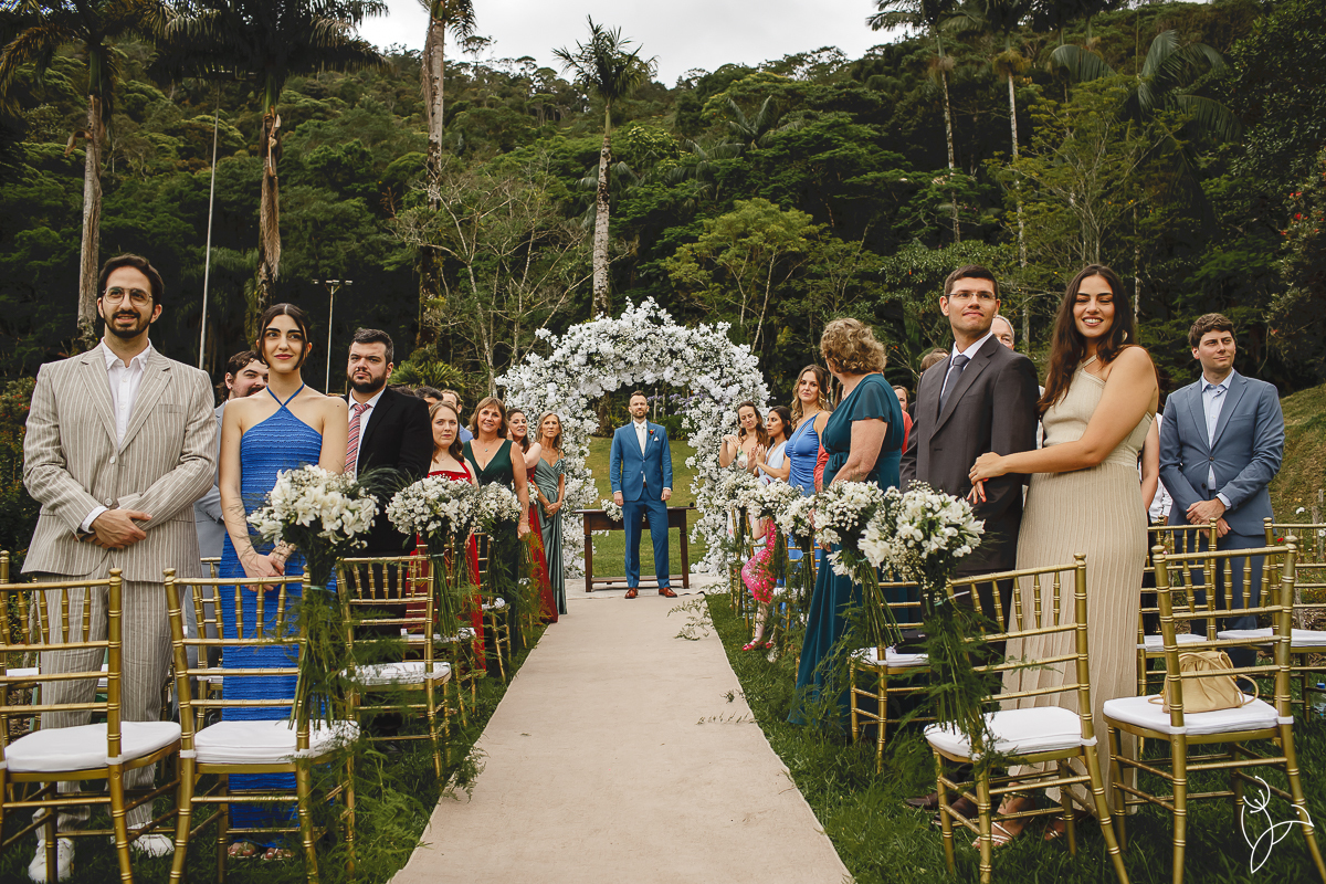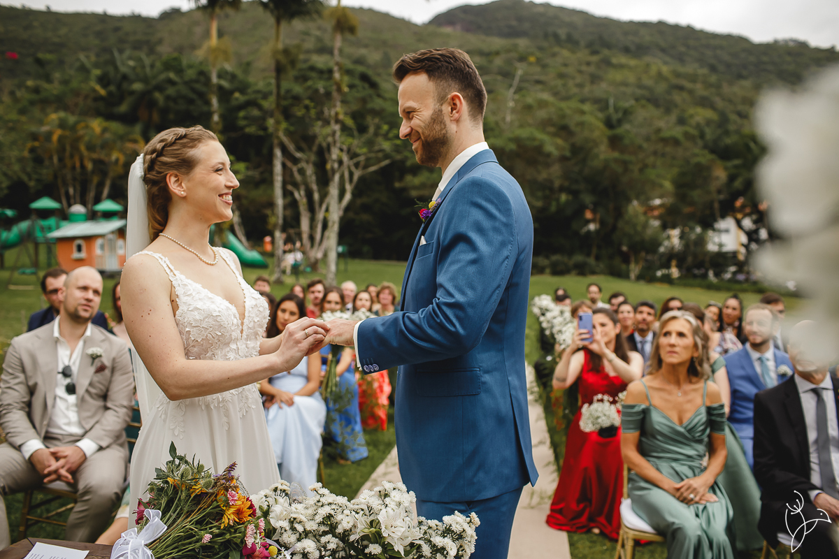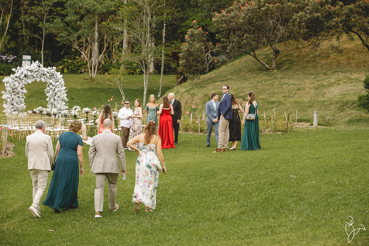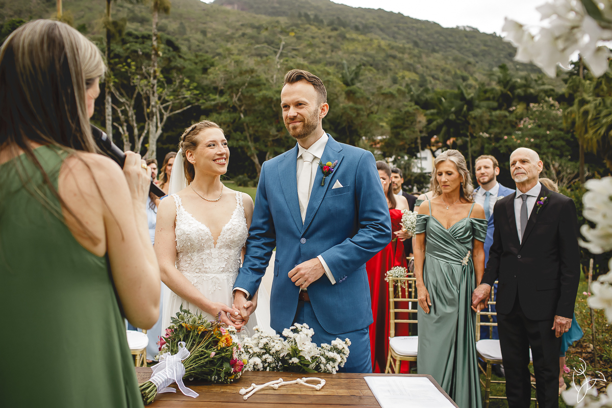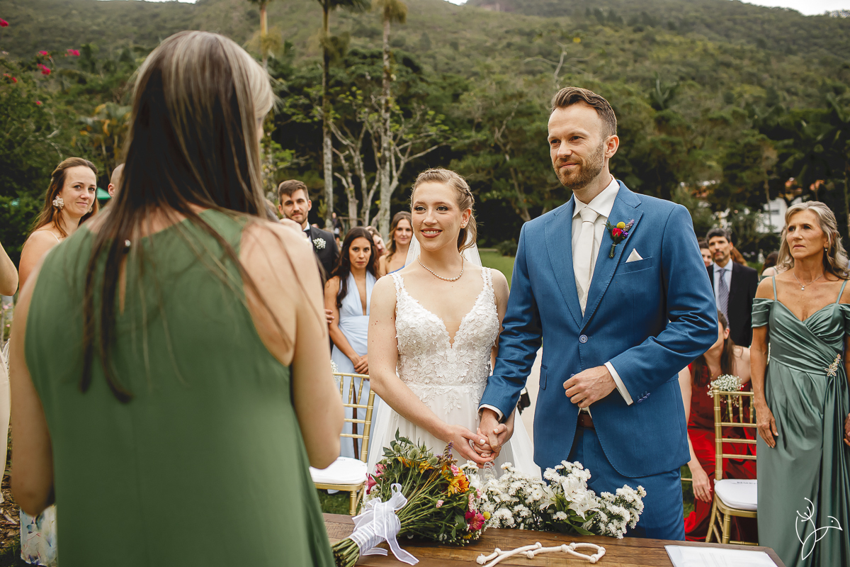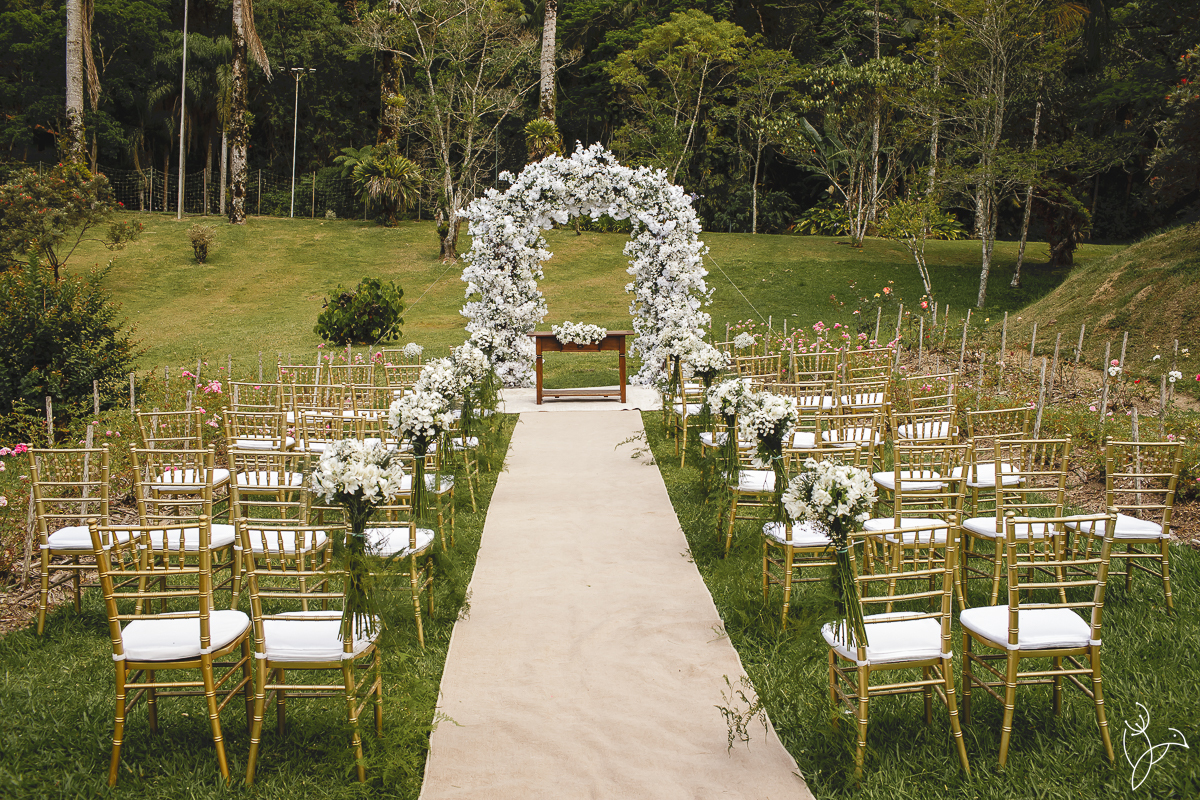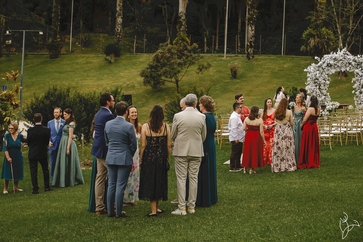 A cerimônia aconteceu no gramado do resort, rodeado pelo verde da natureza e pela tranquilidade do lugar.