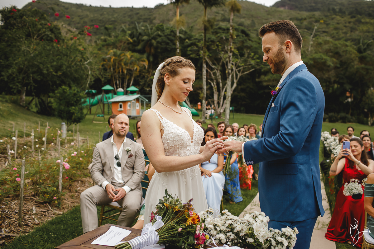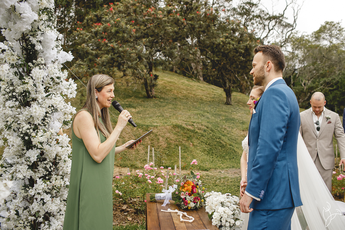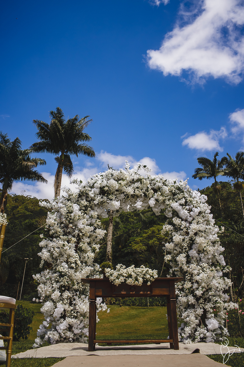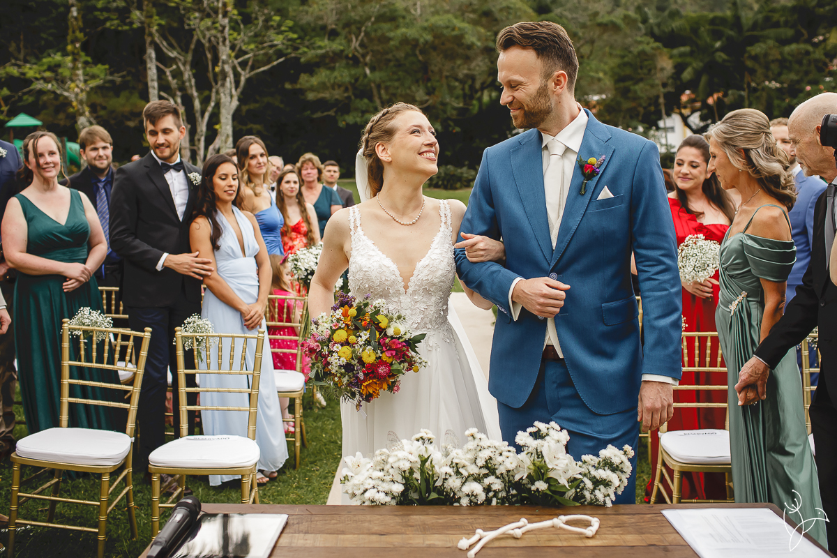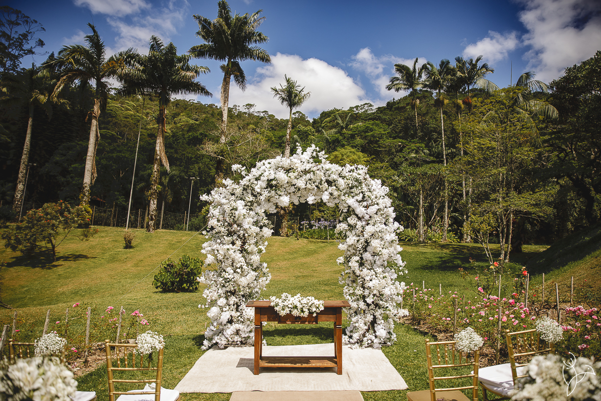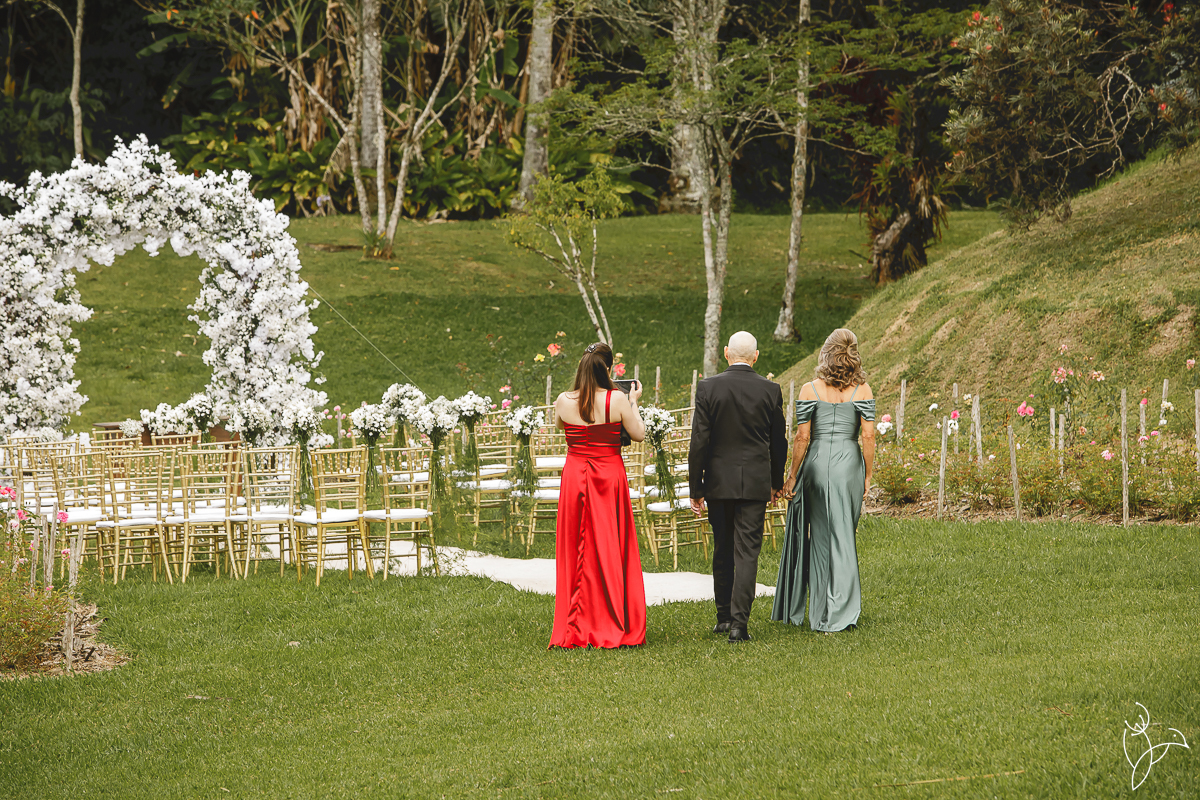 A cerimônia aconteceu no gramado do resort, rodeado pelo verde da natureza e pela tranquilidade do lugar.
