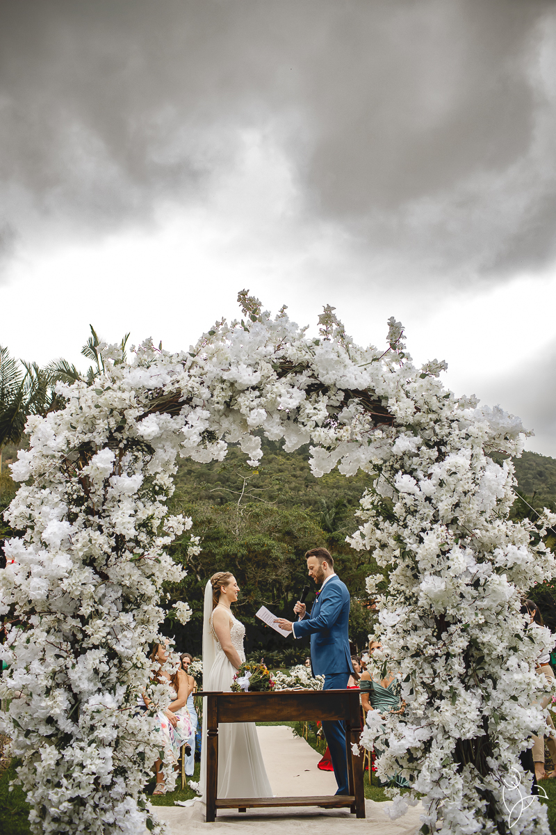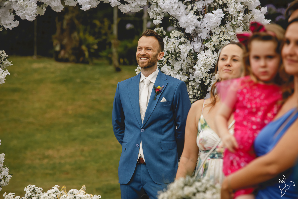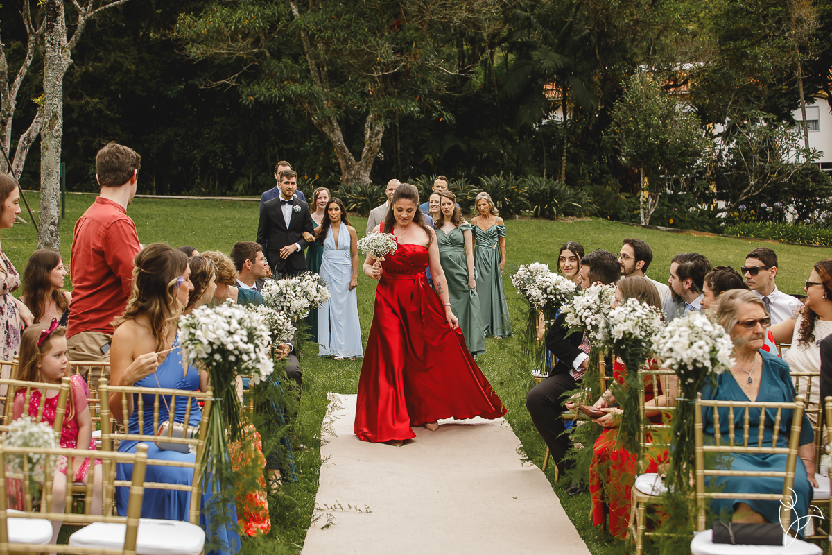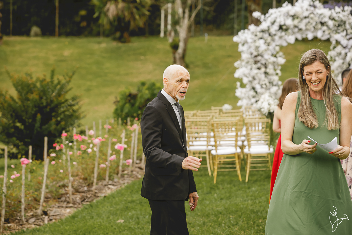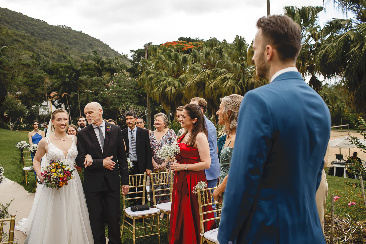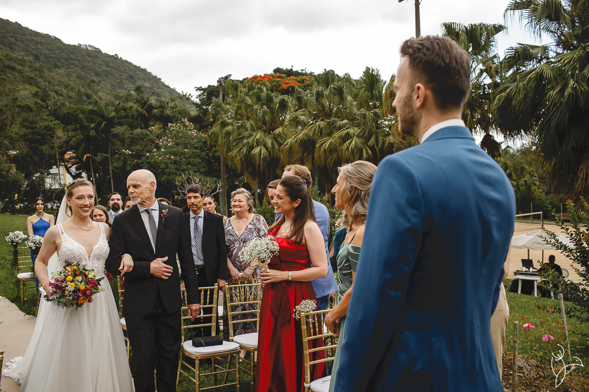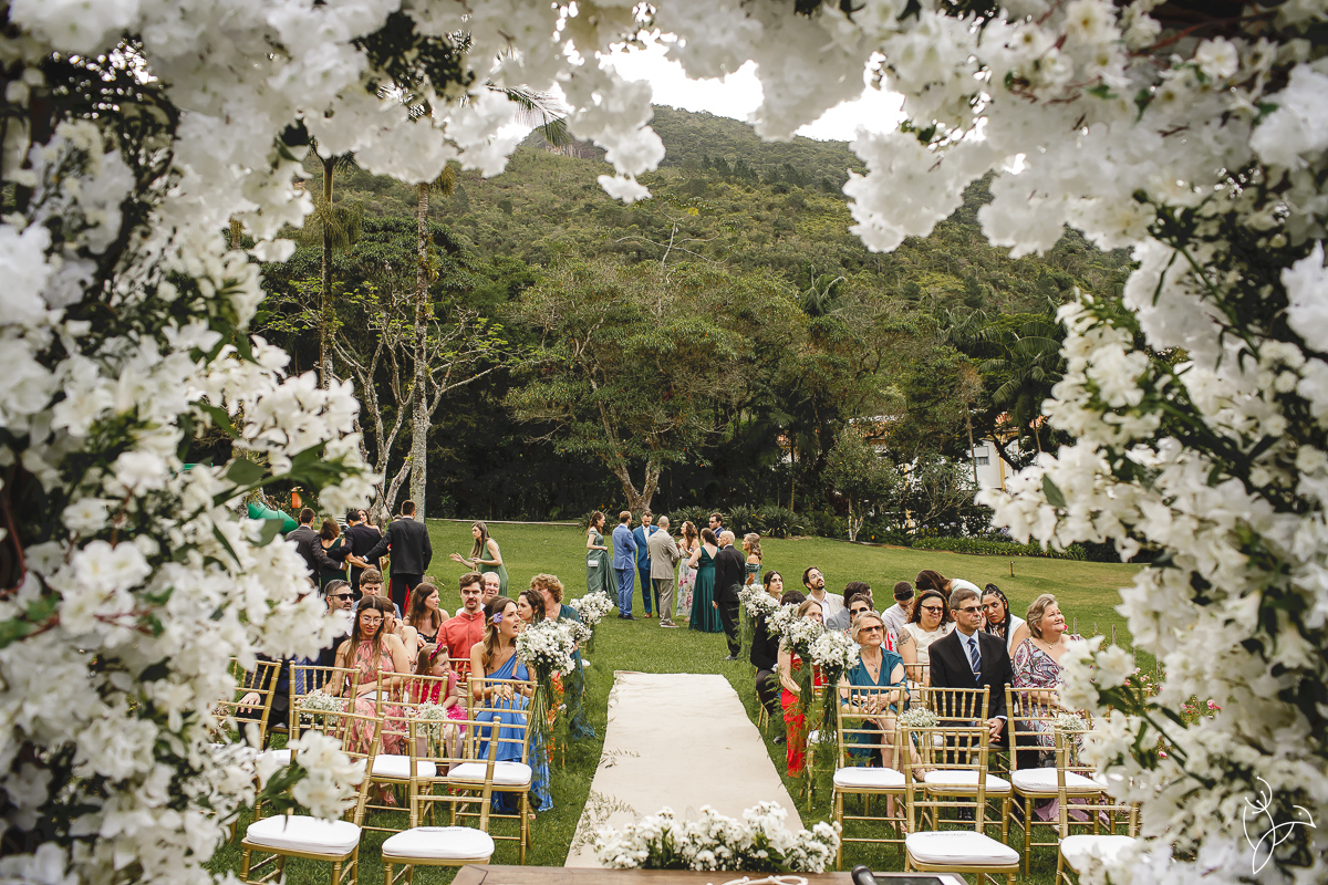 A cerimônia aconteceu no gramado do resort, rodeado pelo verde da natureza e pela tranquilidade do lugar.