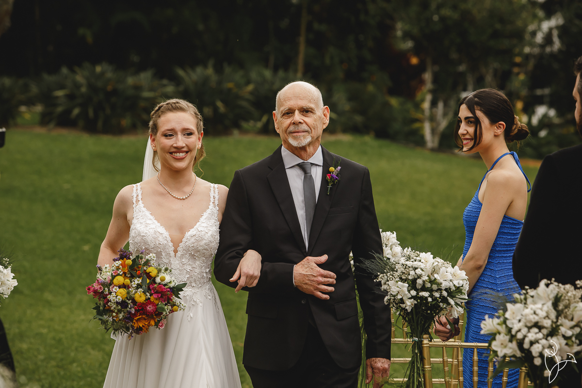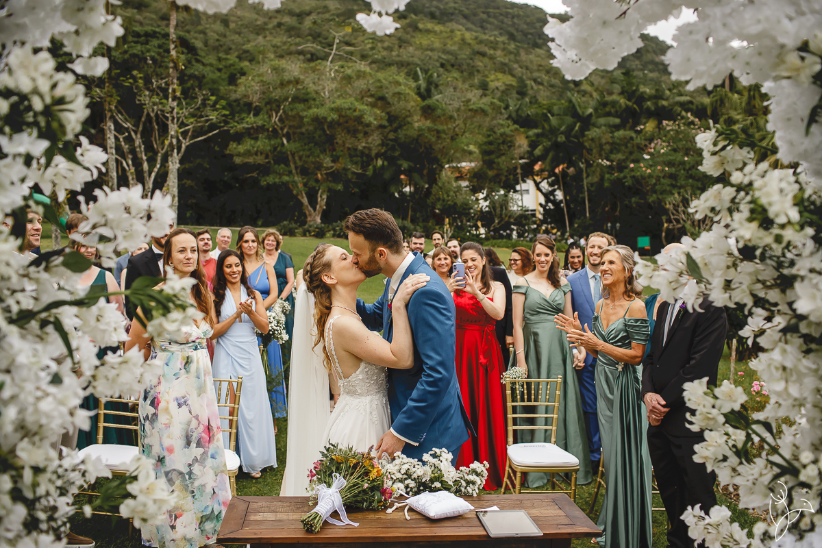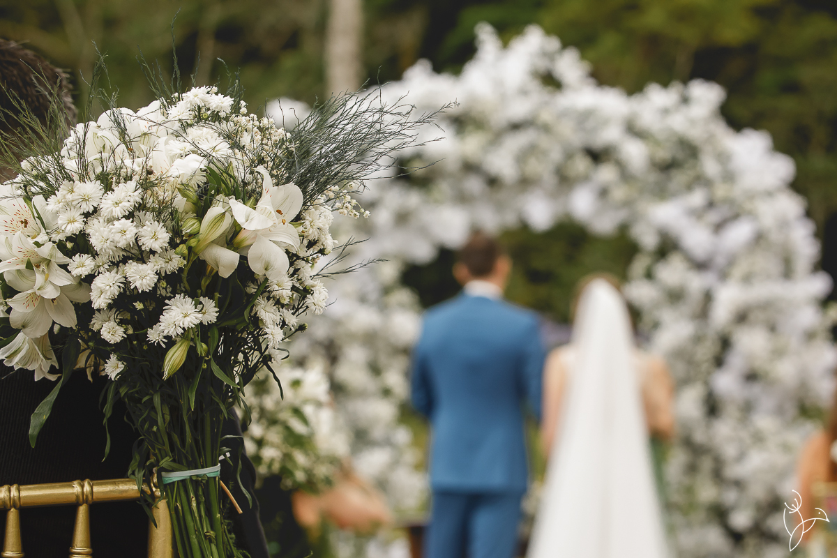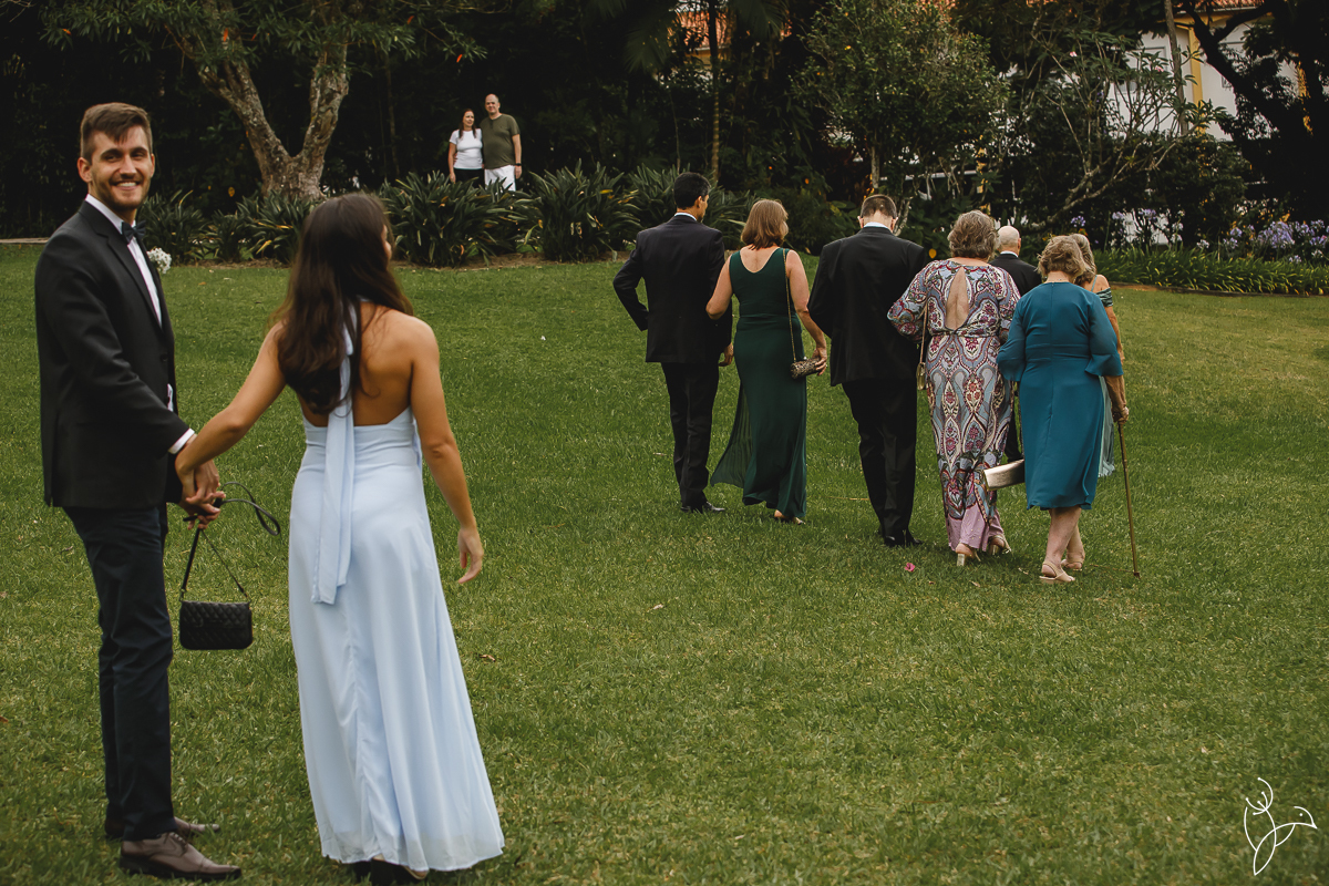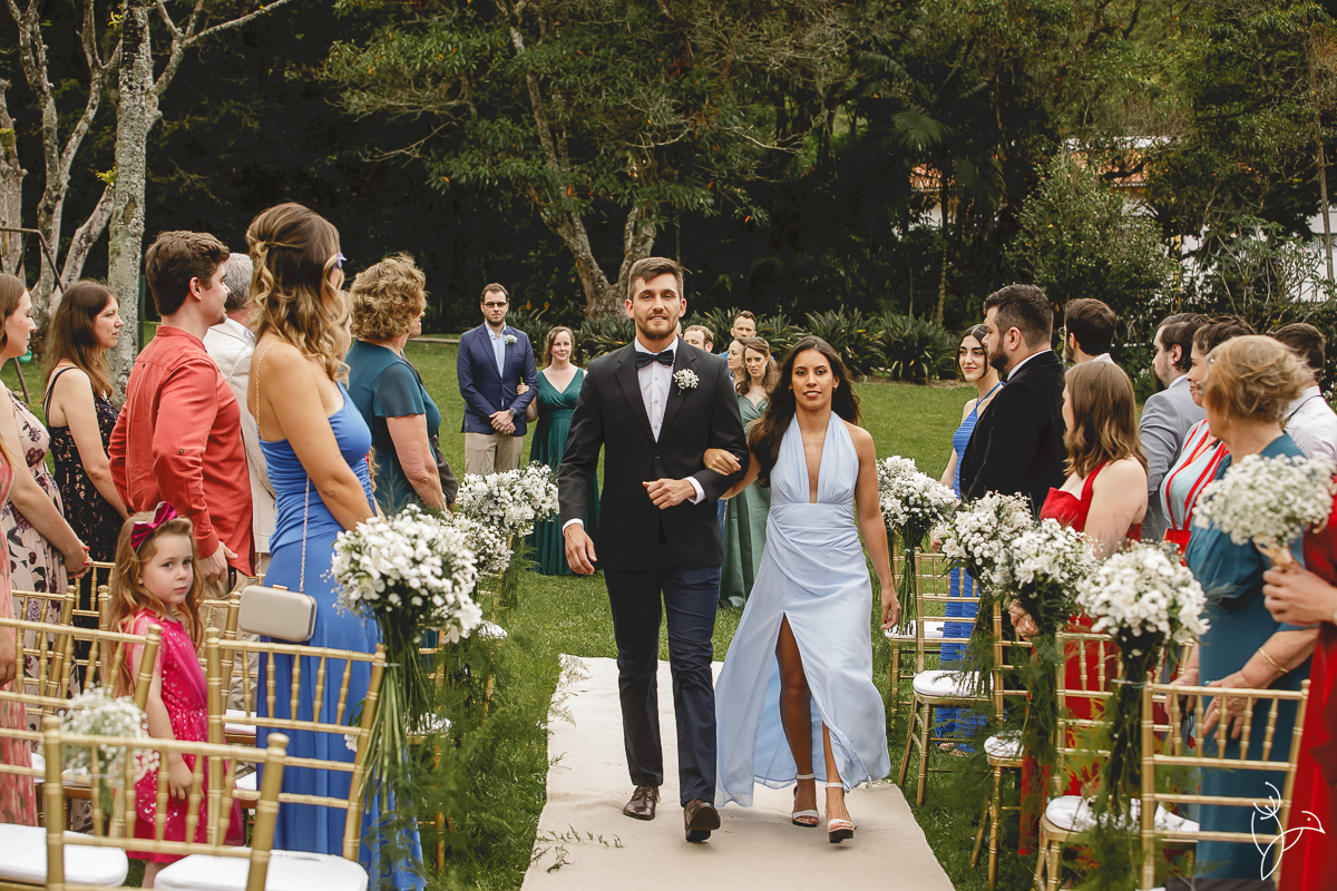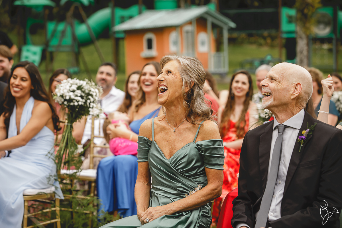 A cerimônia aconteceu no gramado do resort, rodeado pelo verde da natureza e pela tranquilidade do lugar.