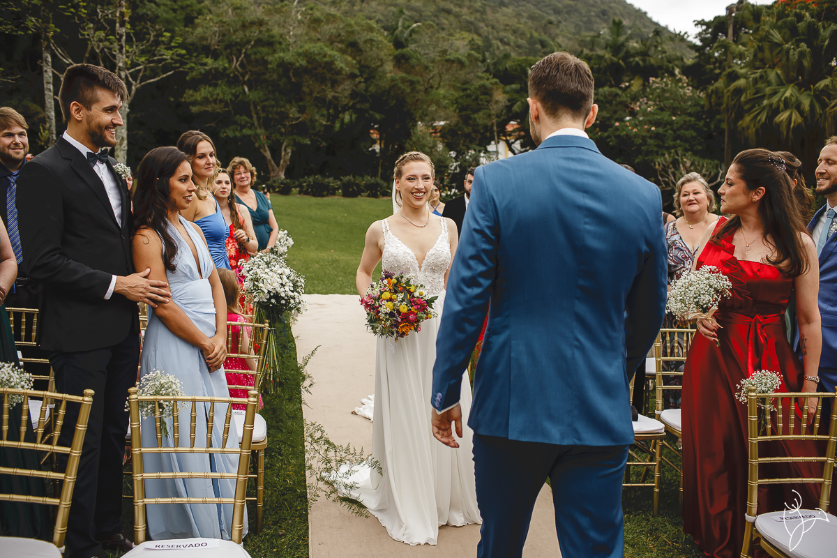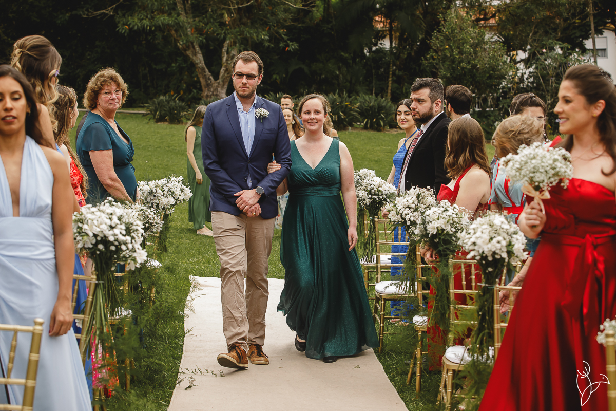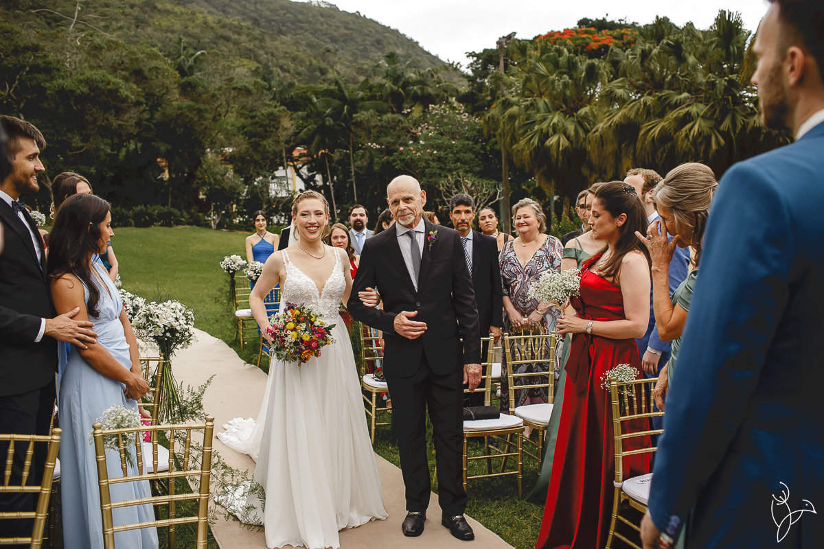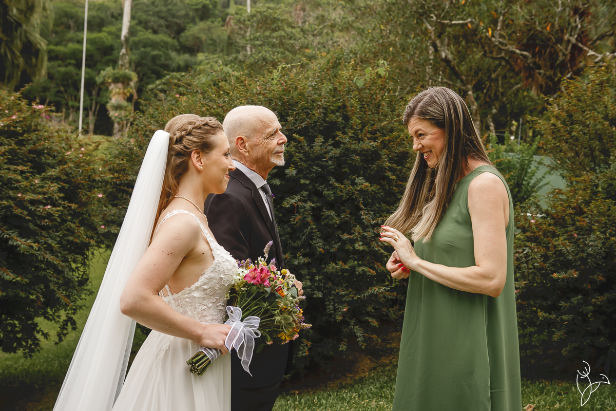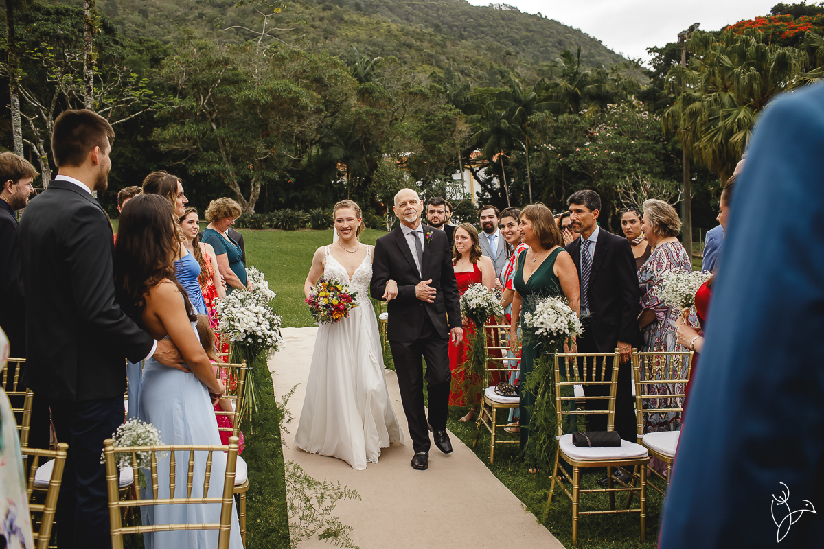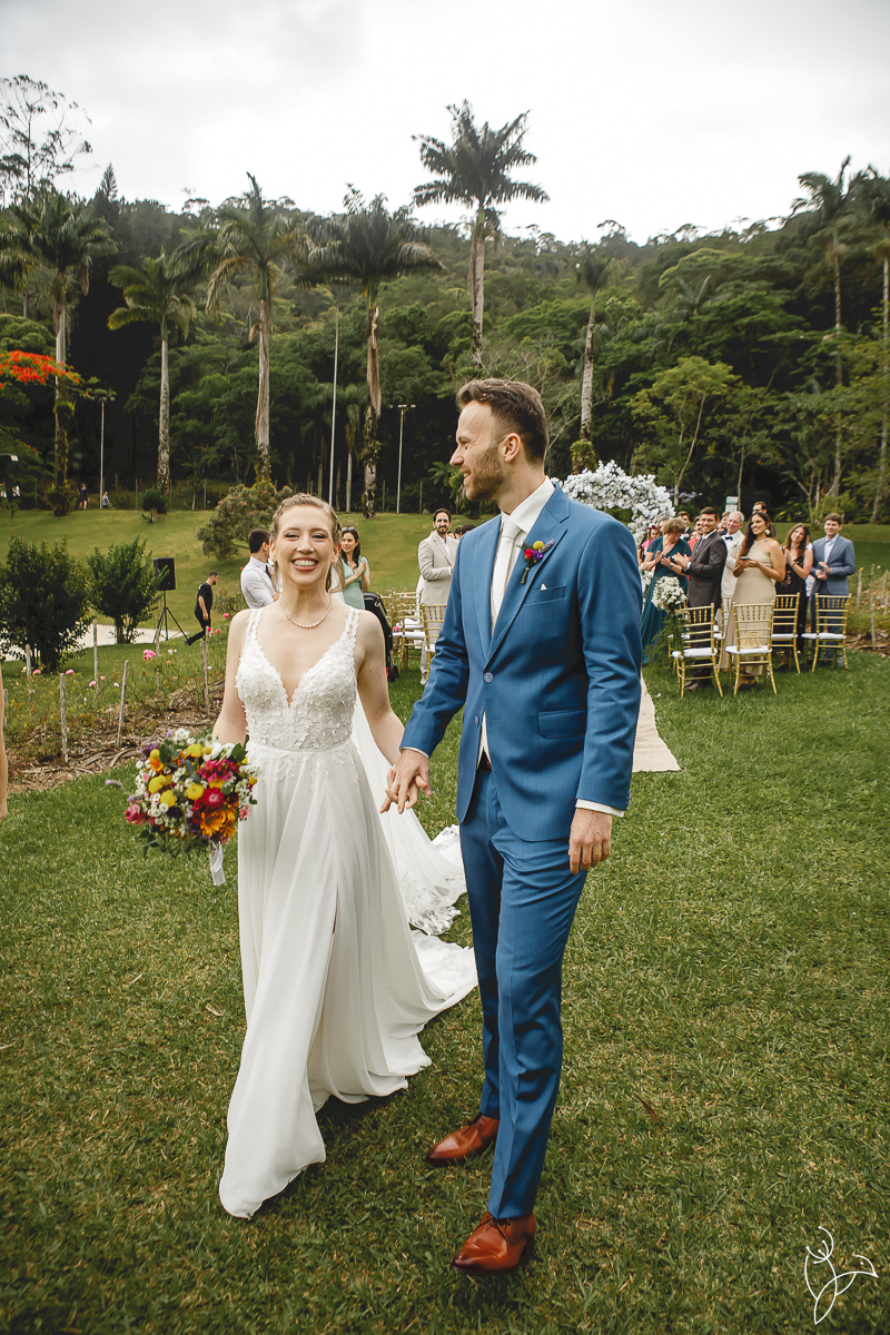 A cerimônia aconteceu no gramado do resort, rodeado pelo verde da natureza e pela tranquilidade do lugar.