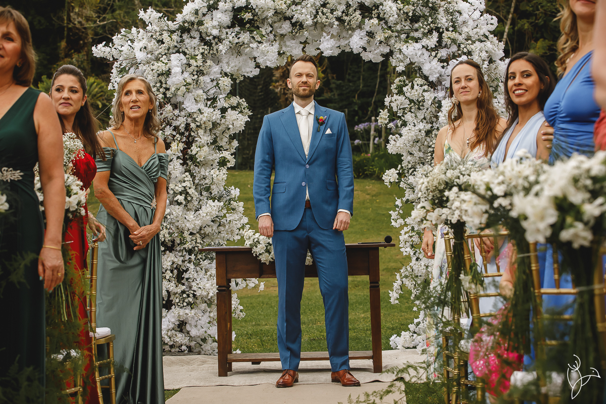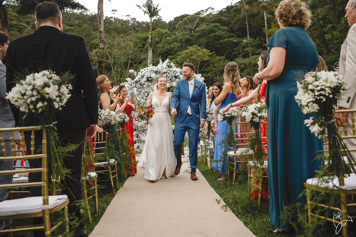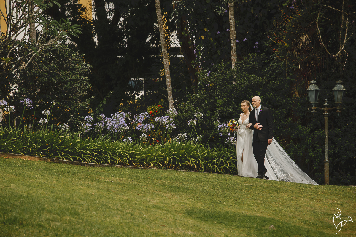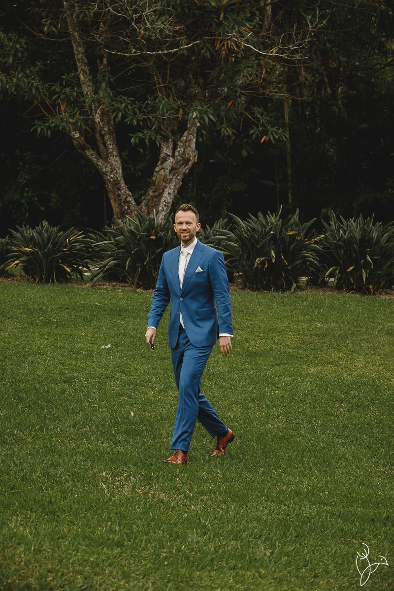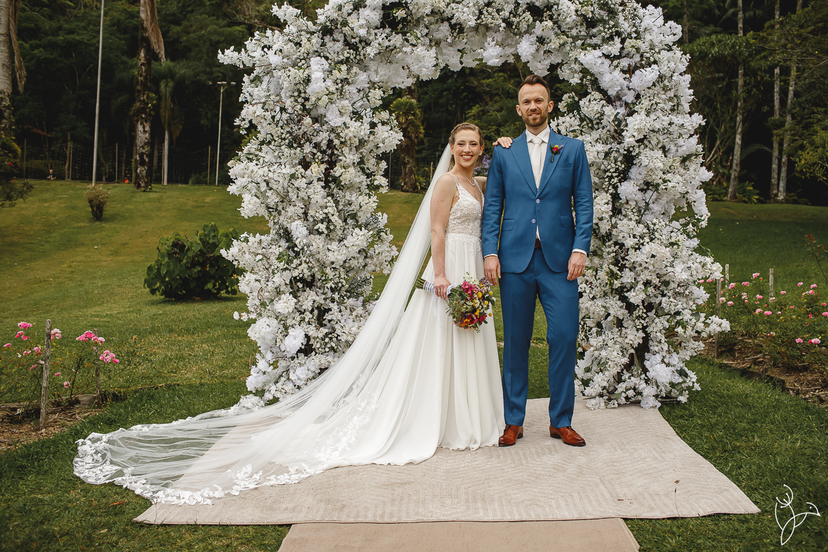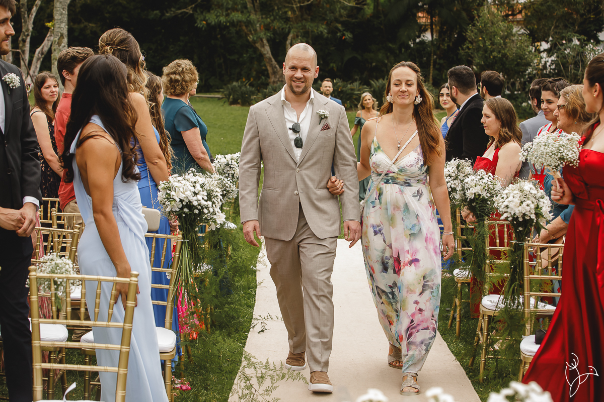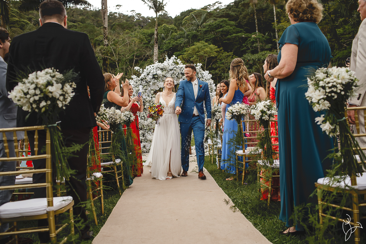 A cerimônia aconteceu no gramado do resort, rodeado pelo verde da natureza e pela tranquilidade do lugar.