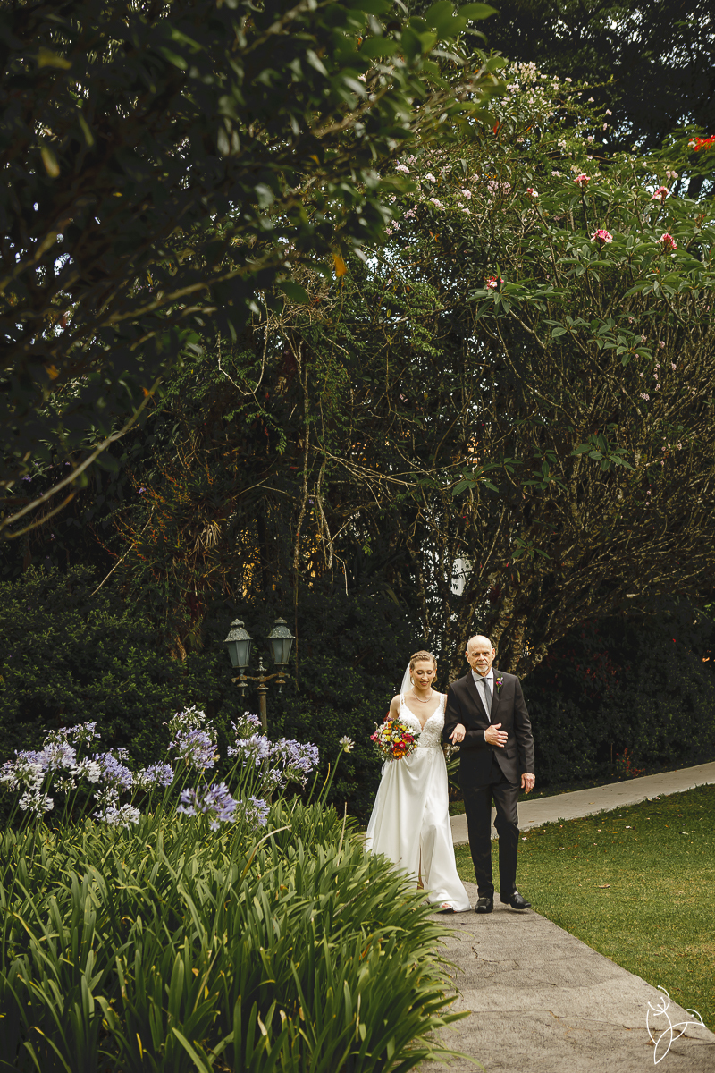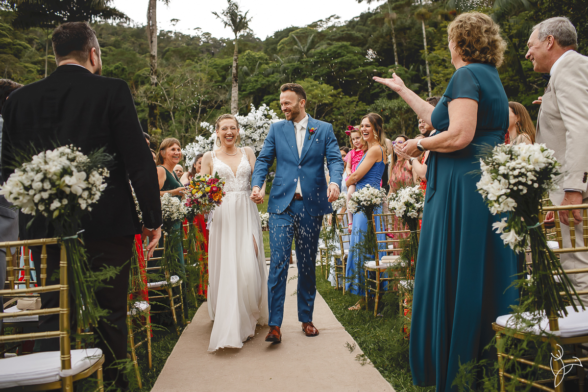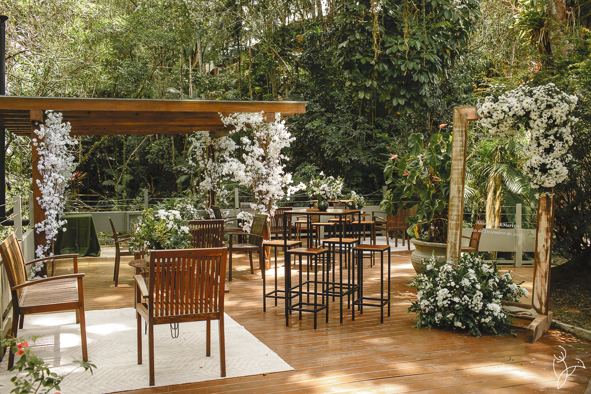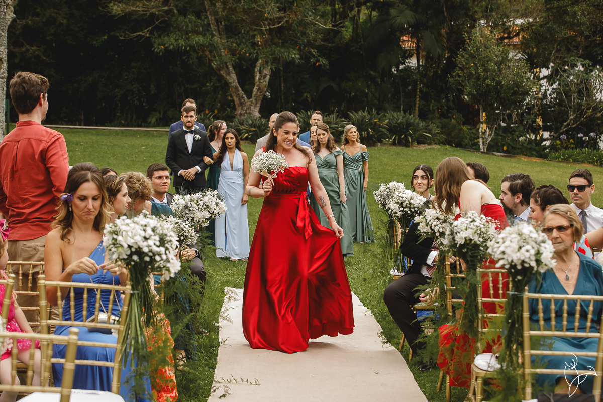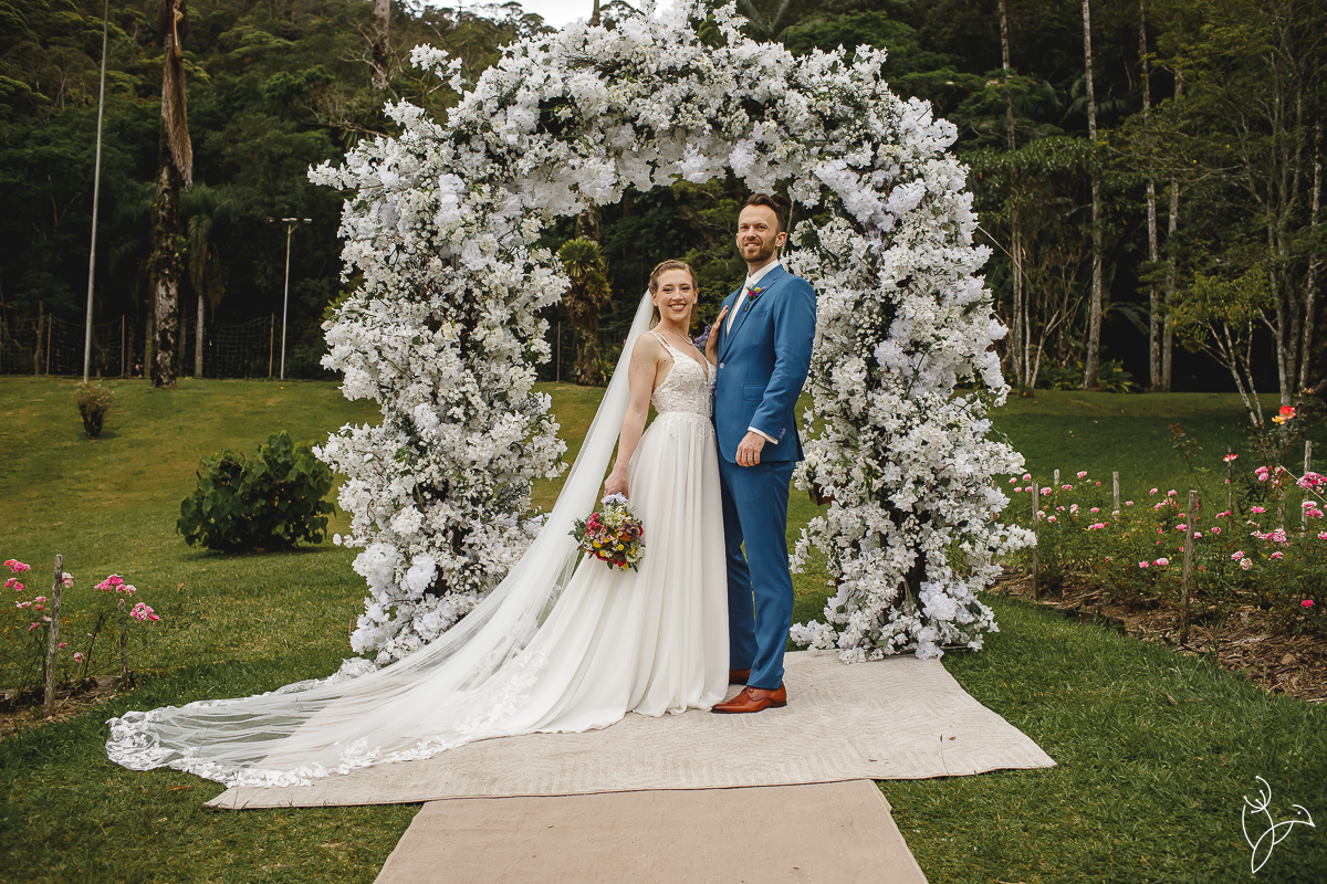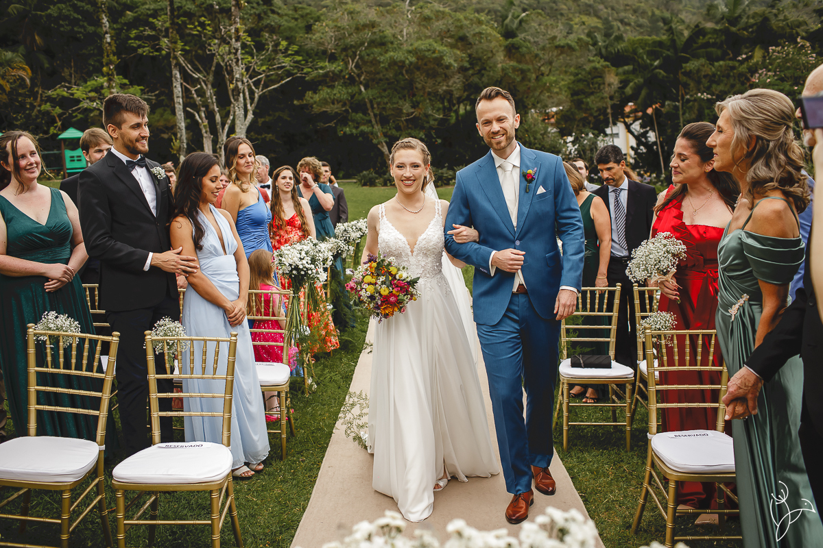 A cerimônia aconteceu no gramado do resort, rodeado pelo verde da natureza e pela tranquilidade do lugar.