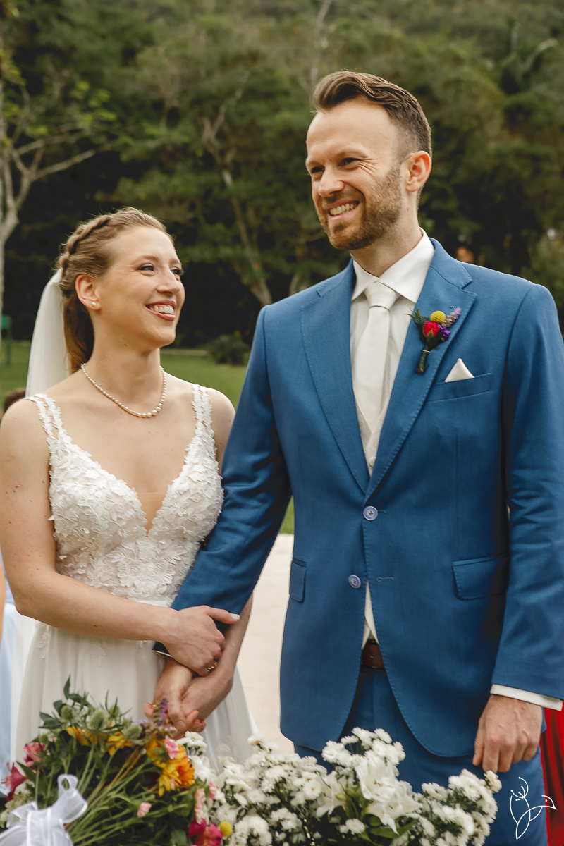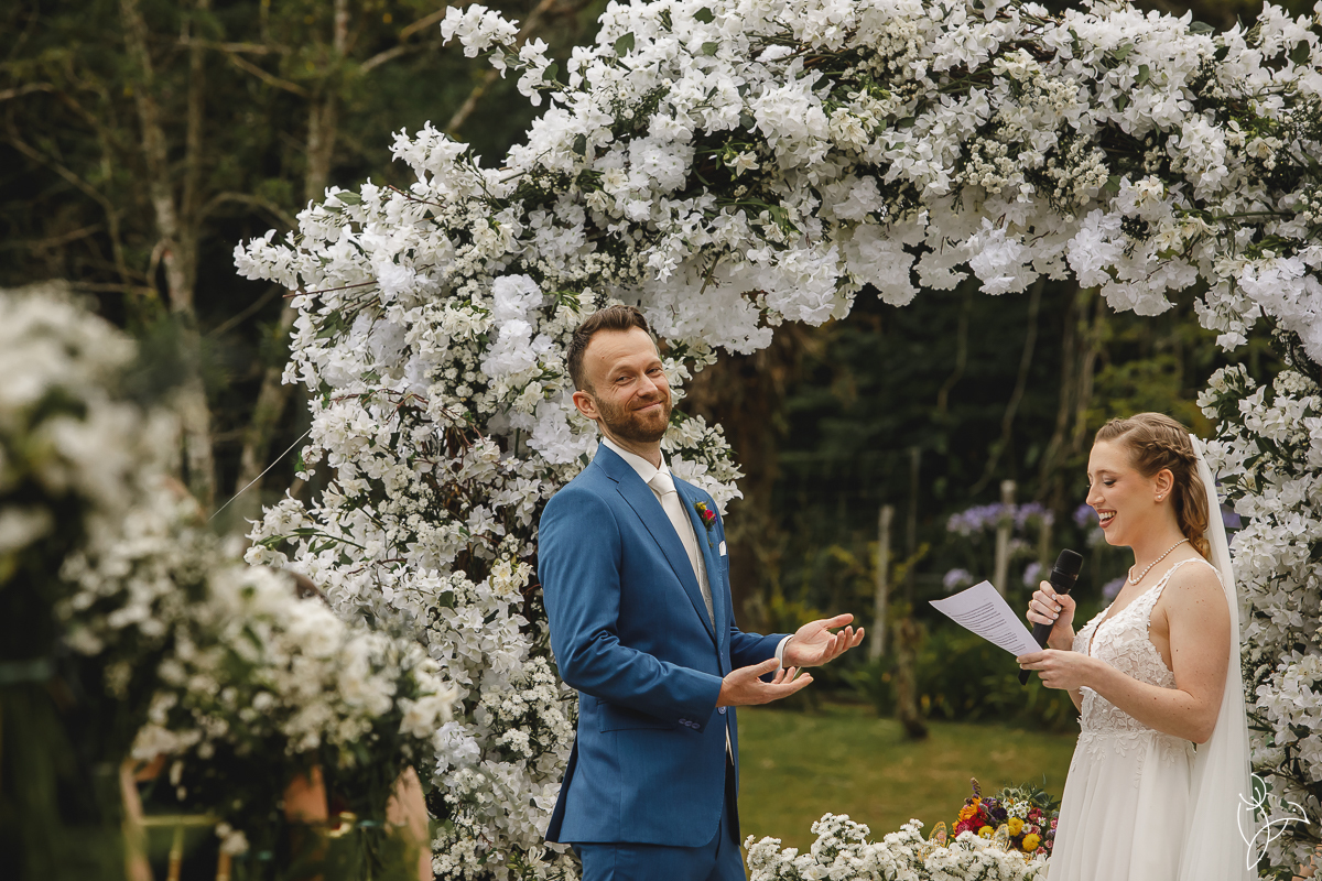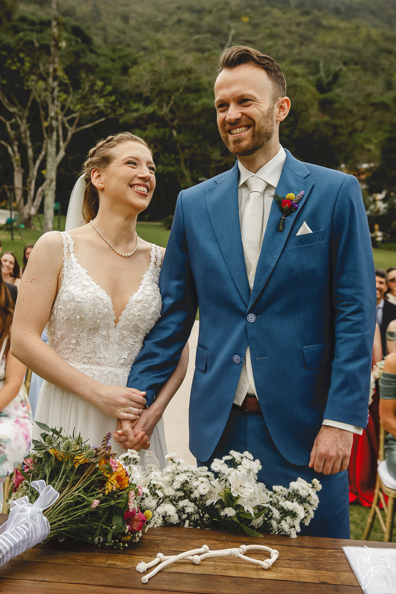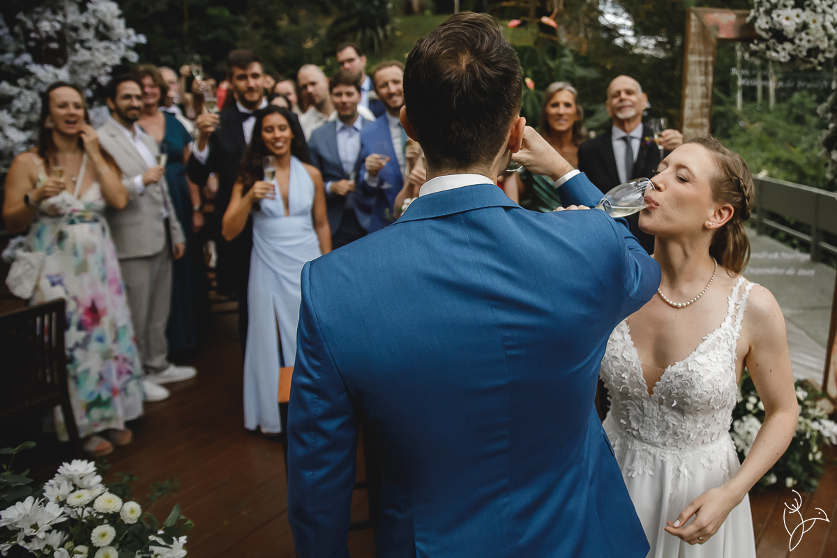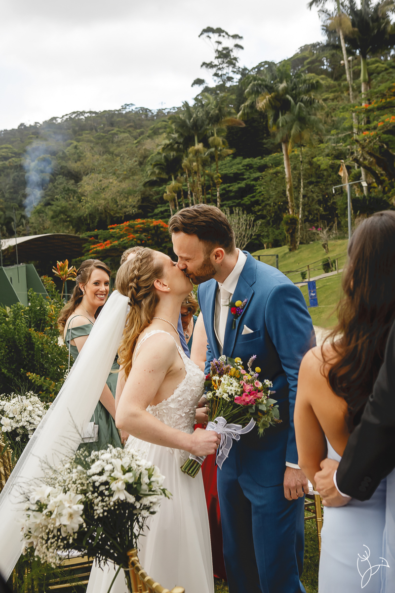Foi uma celebração marcada por muitos sorrisos, olhares cheios de significado e gestos de carinho entre os noivos. Como o casal tem origens diferentes, a cerimônia aconteceu em duas línguas, português e holandês, tornando o momento ainda mais especial para todos os convidados.