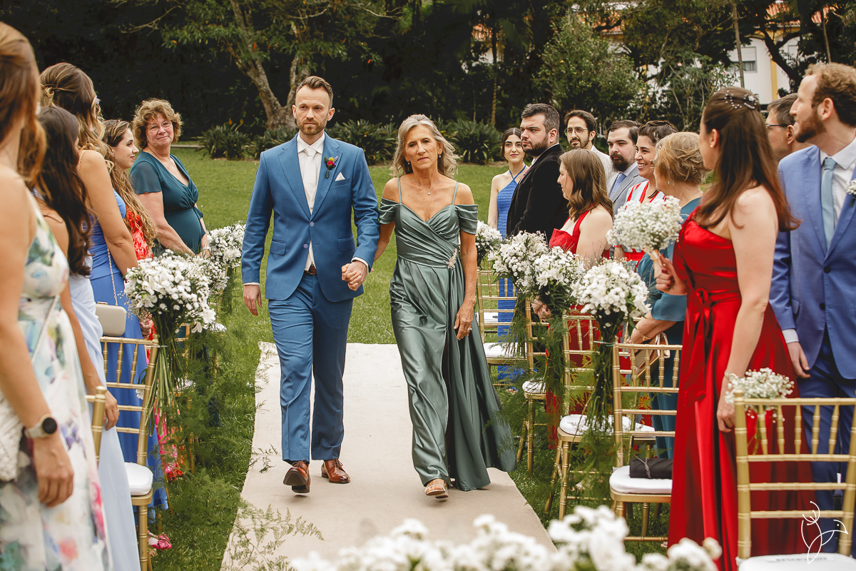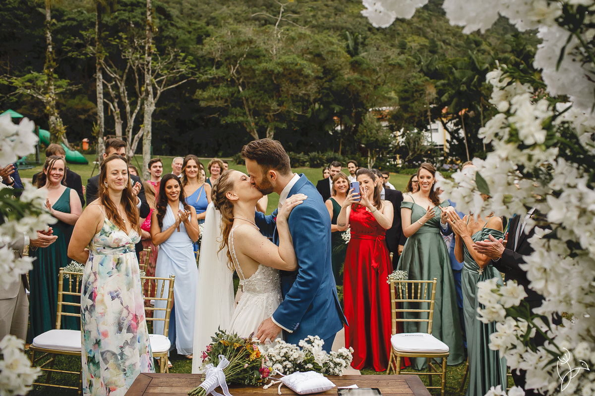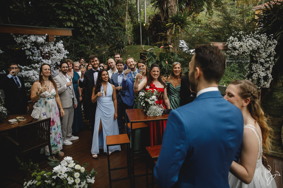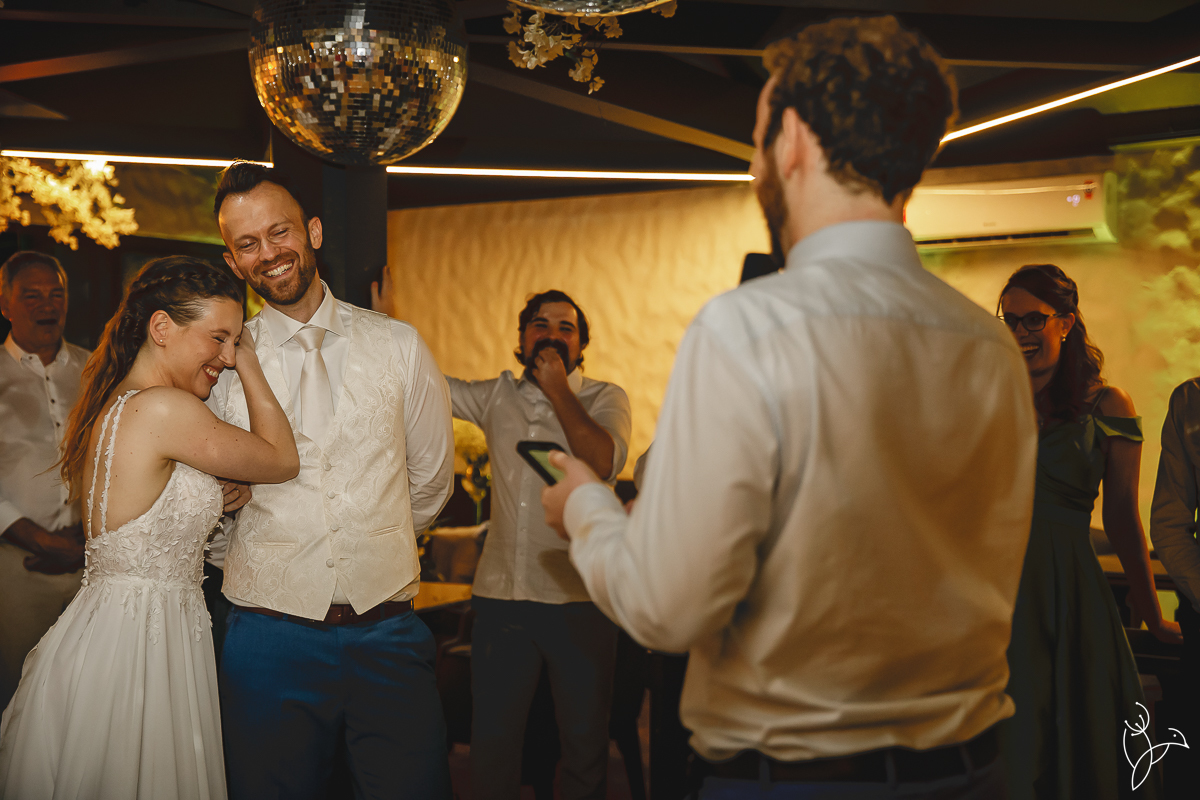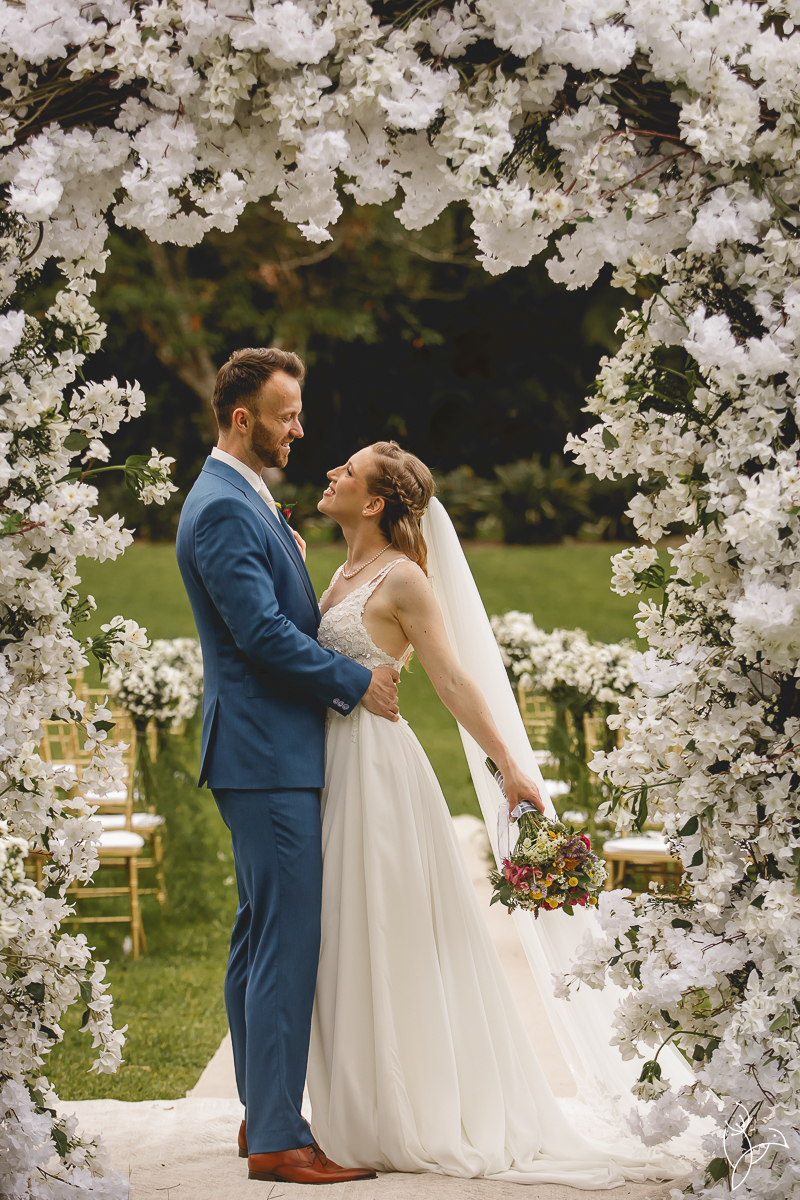 Foi uma celebração marcada por muitos sorrisos, olhares cheios de significado e gestos de carinho entre os noivos. Como o casal tem origens diferentes, a cerimônia aconteceu em duas línguas, português e holandês, tornando o momento ainda mais especial para todos os convidados.