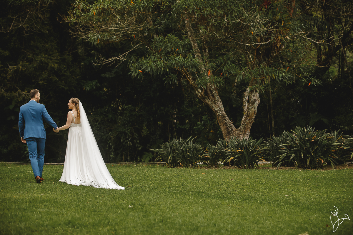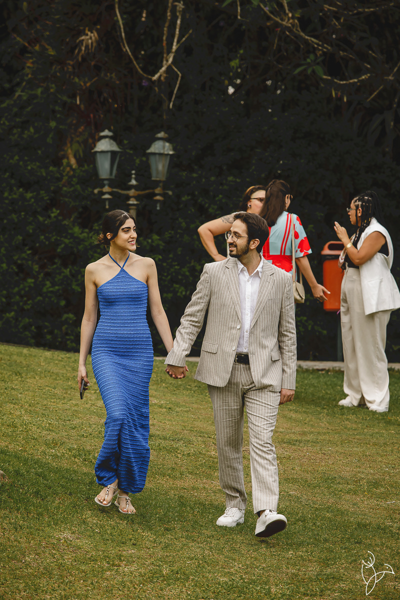Caminhamos pelos jardins e paisagens naturais do local, explorando diferentes cenários que tornaram as imagens ainda mais especiais. A natureza ao redor, combinada com a leveza do casal, trouxe uma atmosfera romântica e espontânea para esse momento.