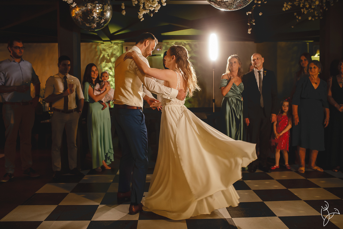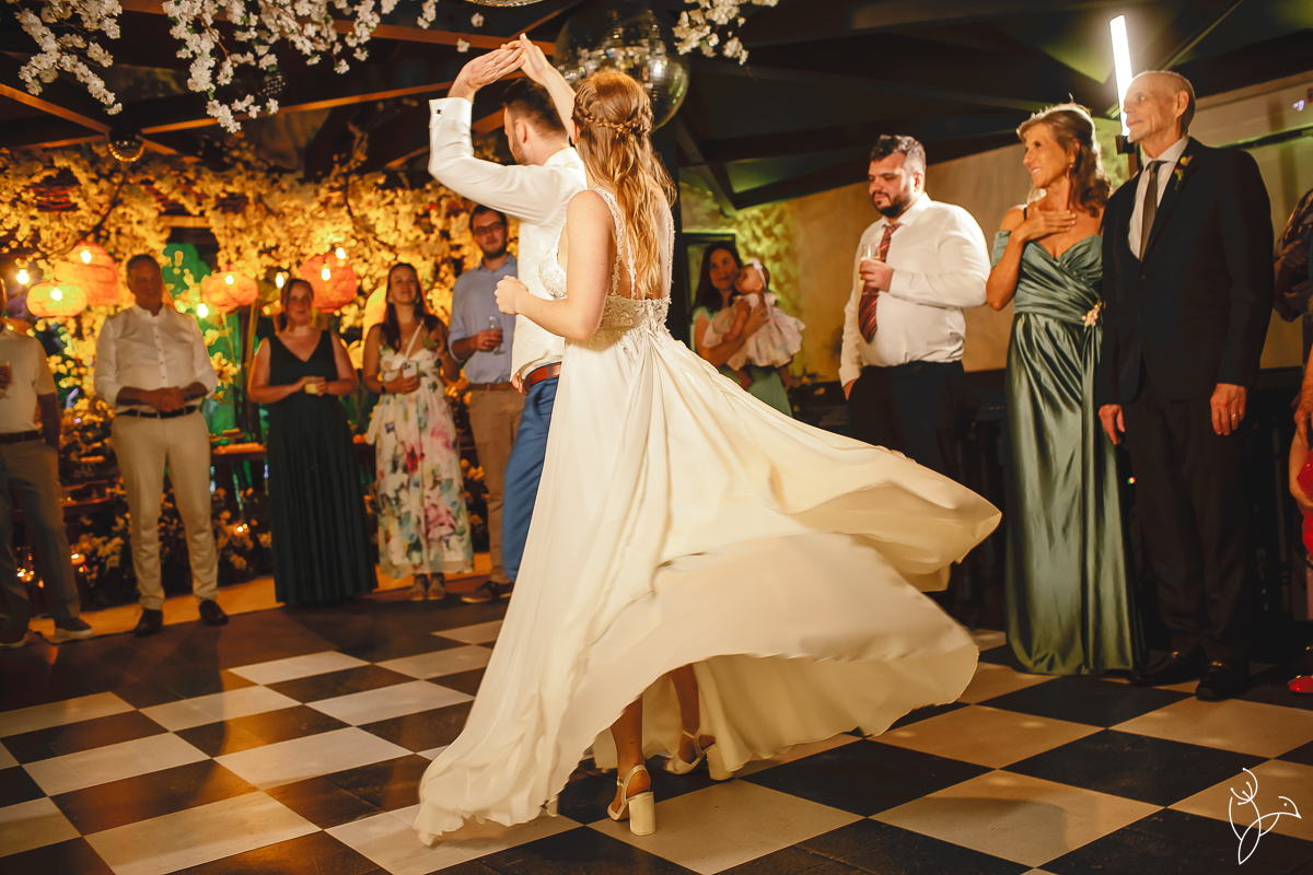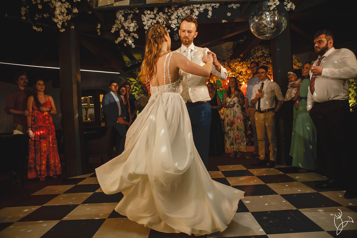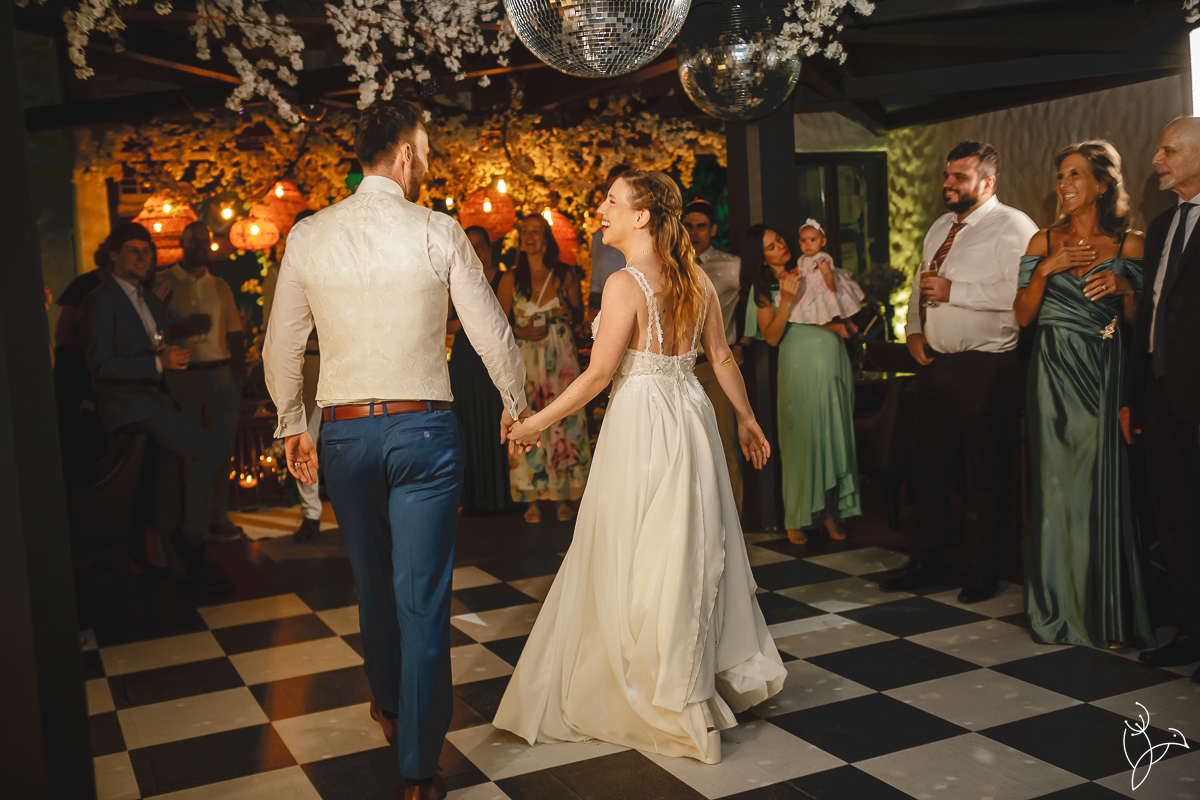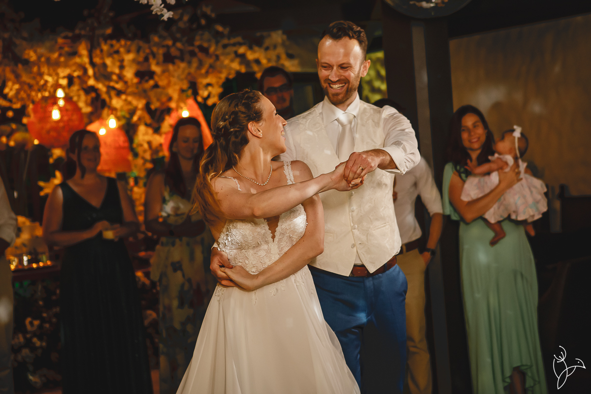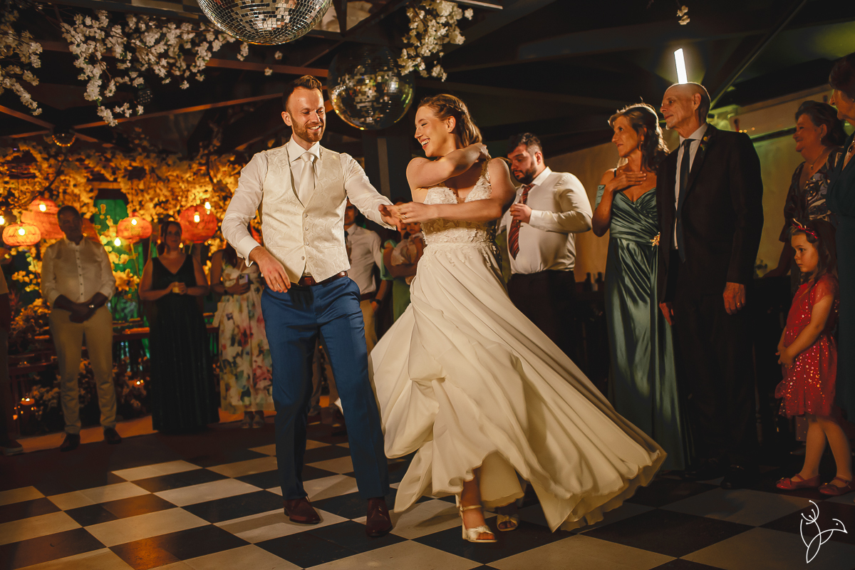 Um dos momentos mais marcantes da noite foi a valsa dos noivos. Alessandra e Martijn prepararam uma coreografia especial e surpreenderam todos os convidados com uma apresentação cheia de sintonia e personalidade.