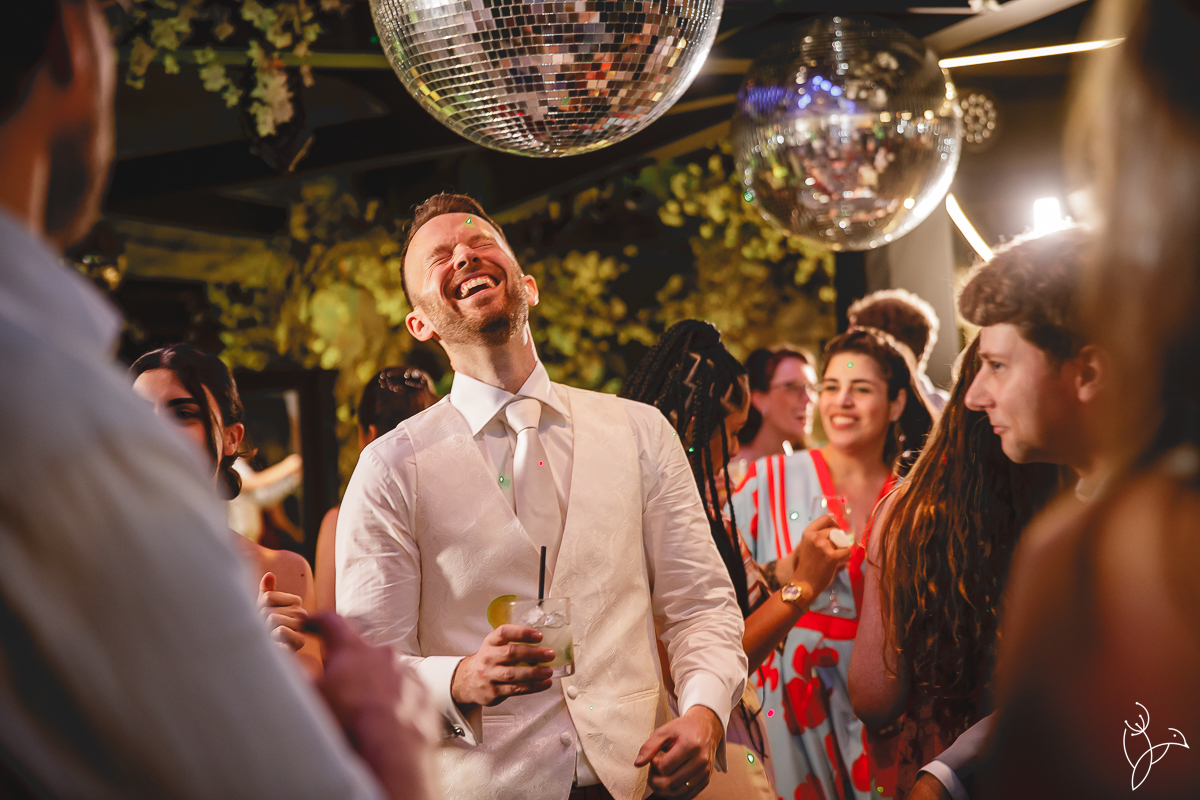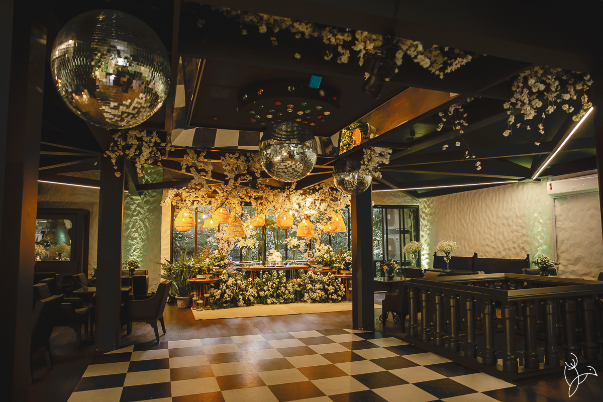 A celebração continuou na boate do próprio resort, onde amigos e familiares se reuniram para comemorar.