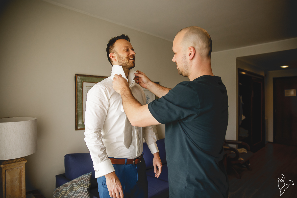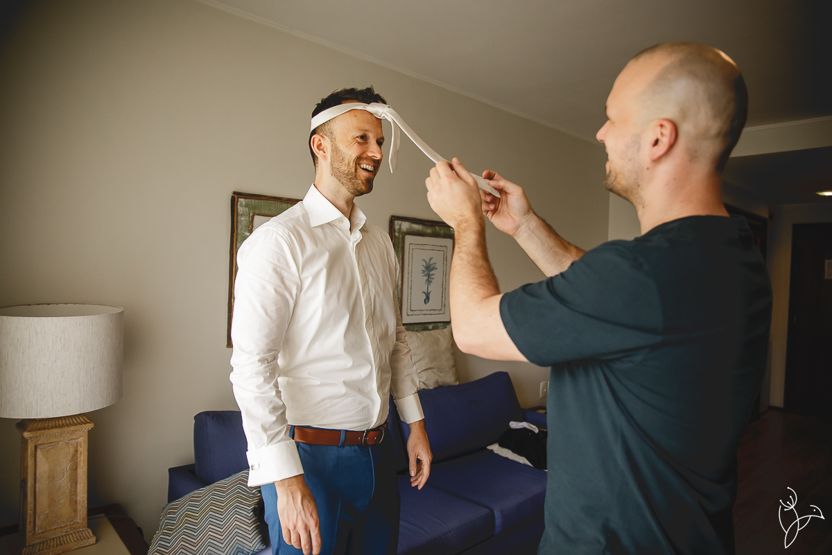 O dia começou com os preparativos dos noivos dentro do próprio resort.