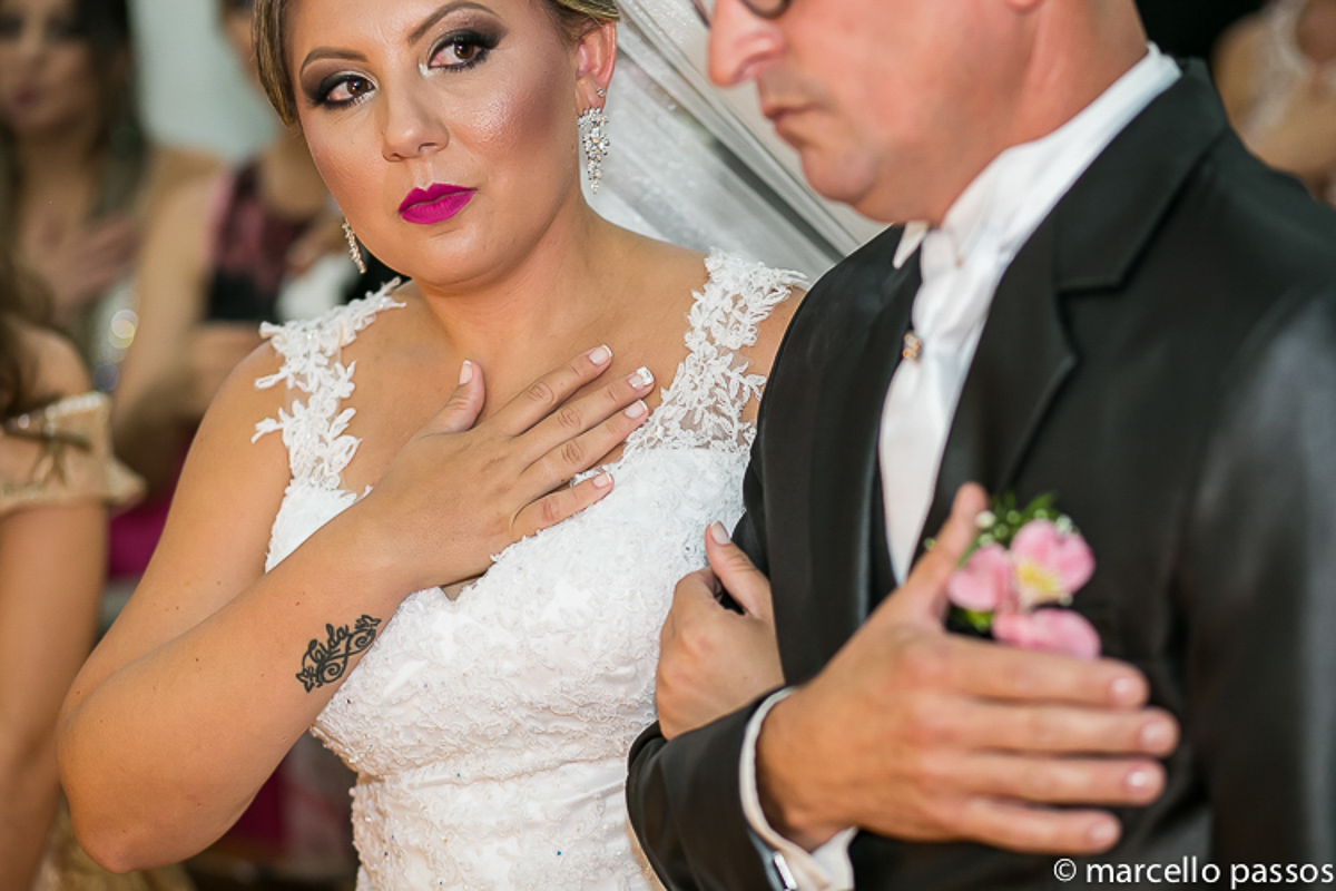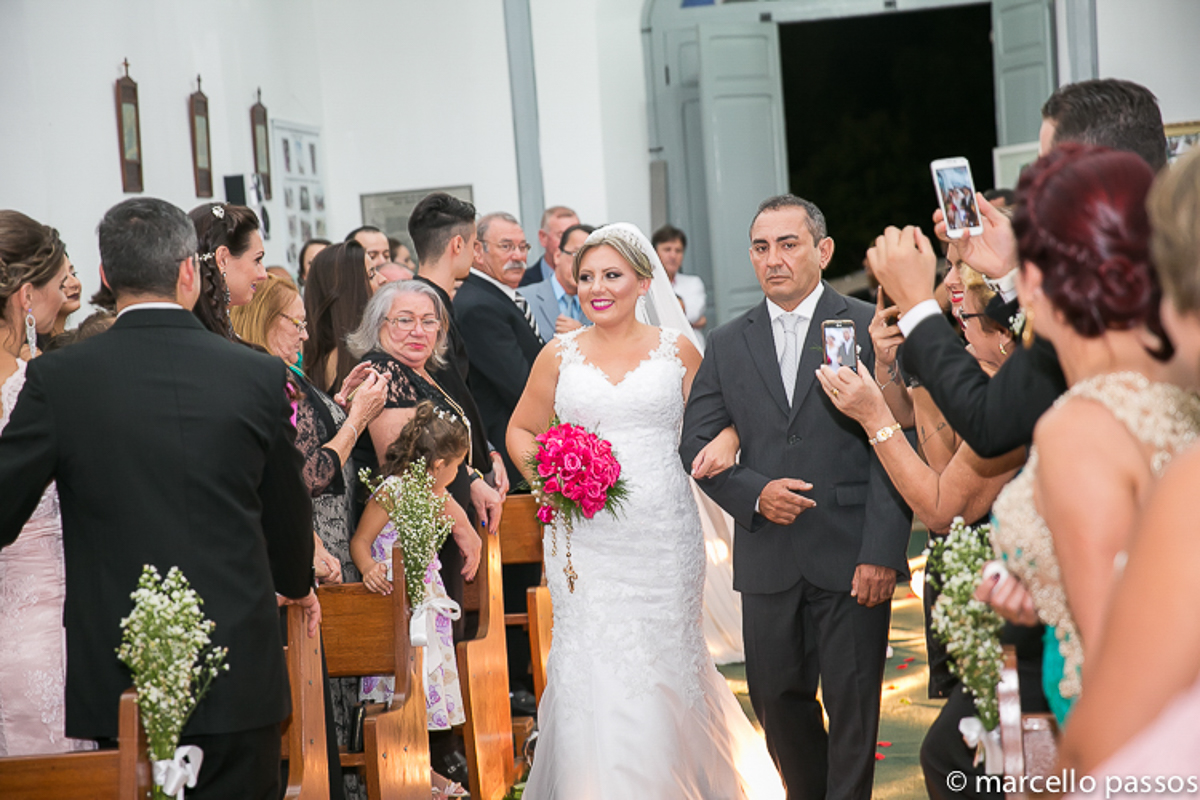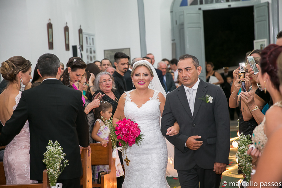 Esse lindo casamento aconteceu na Igreja da Irmandade Nosso Senhor Bom Jesus dos Passos em São José, é uma Igreja singela, mas é incrivelmente linda. Nos proporciona lindas imagens sempre que podemos estar lá fotografando momentos felizes como esse da Samara e do Ailton.