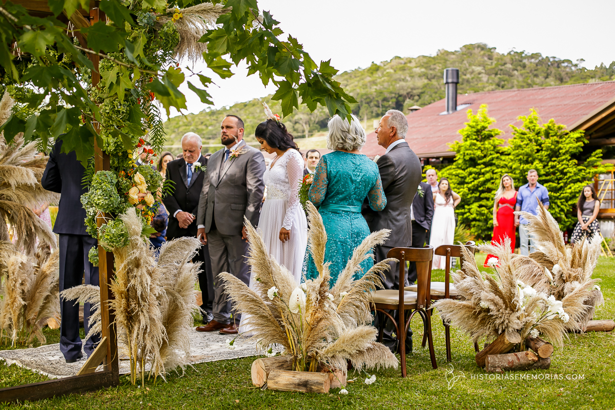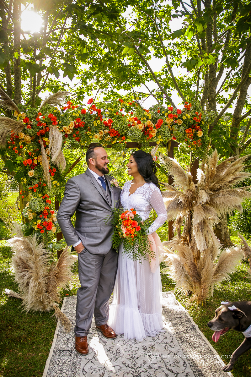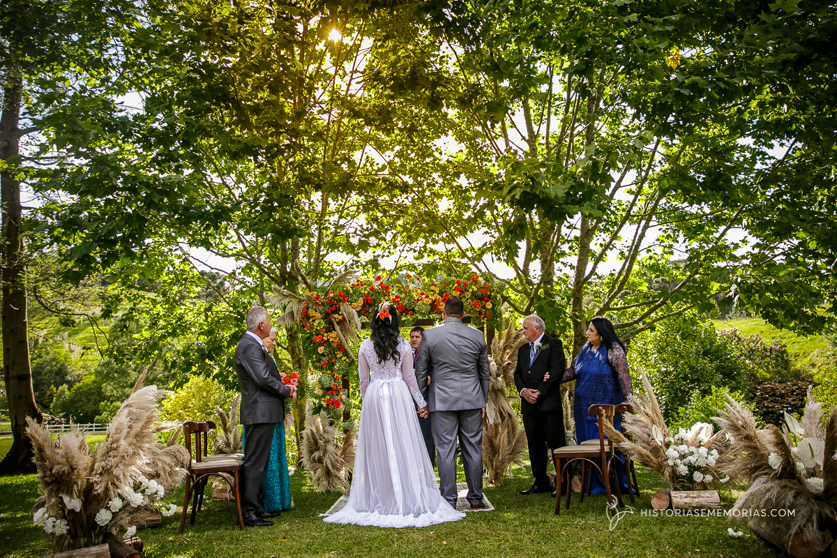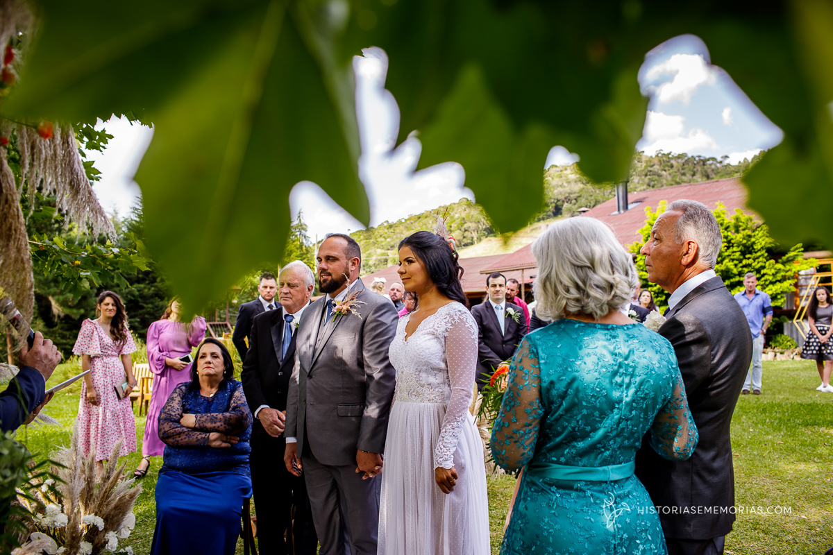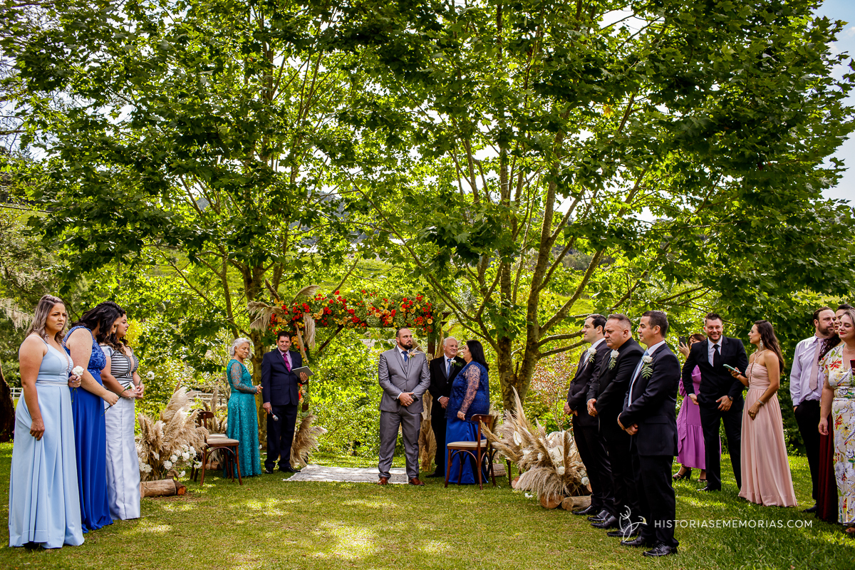 Eles são de longe , lá da cidade de Caçador e vieram casar aqui em rancho Queimado no Jardim dos Plátanos . Uma cerimônia ao ar livre, cheia de Amor, cercados apenas pelos mais íntimos mas grandiosa na vibração de energia positiva.