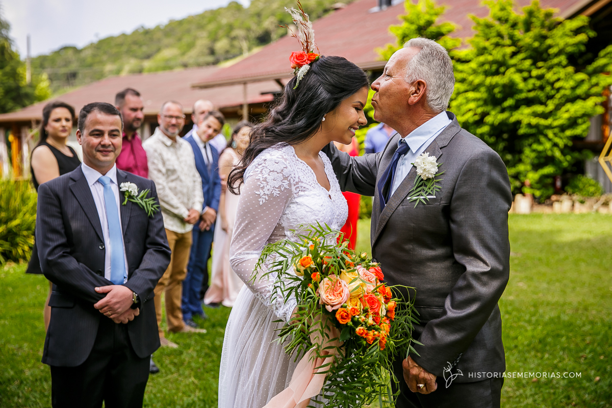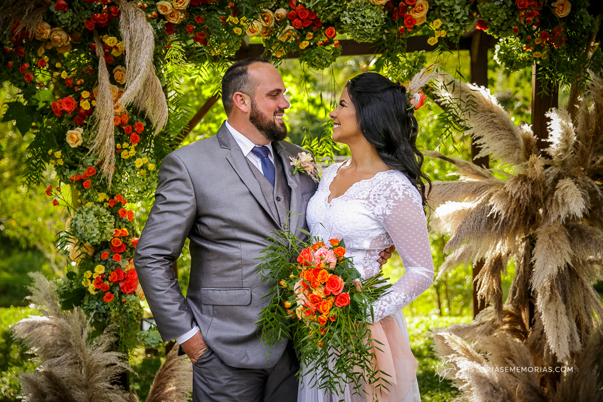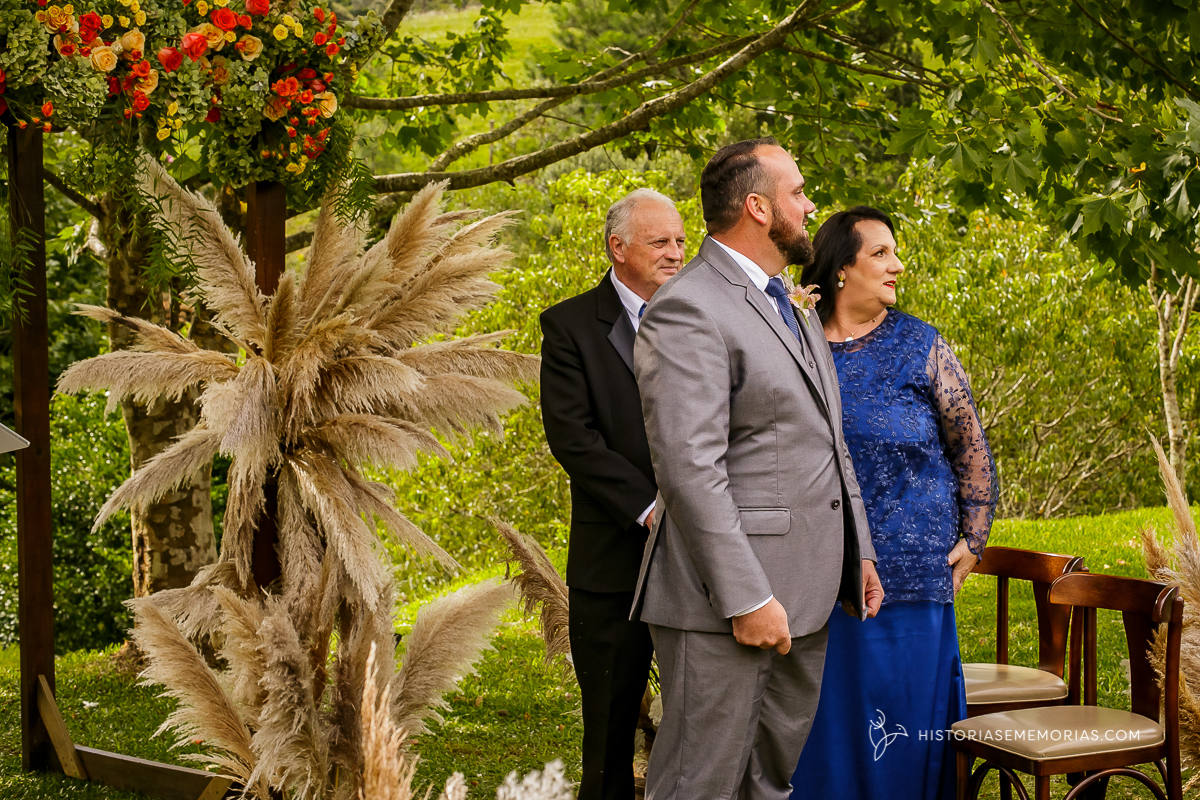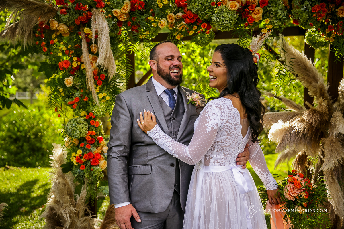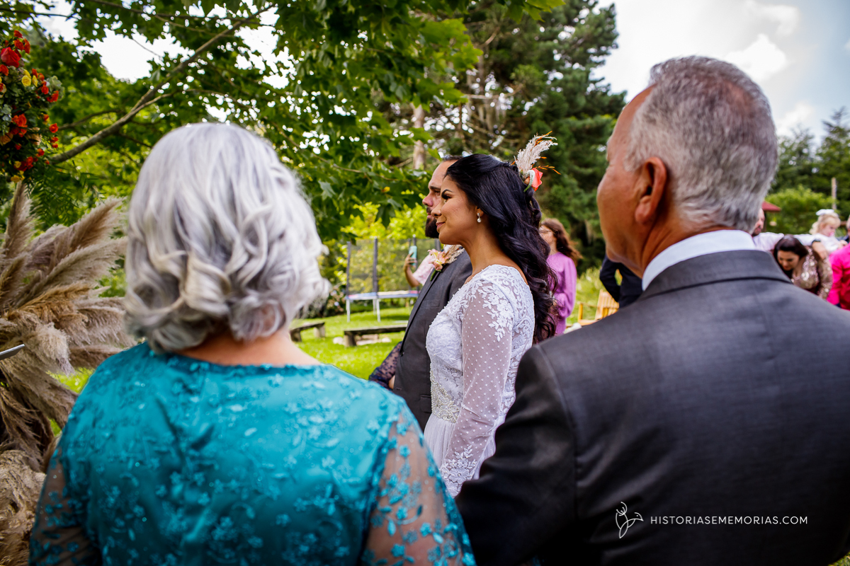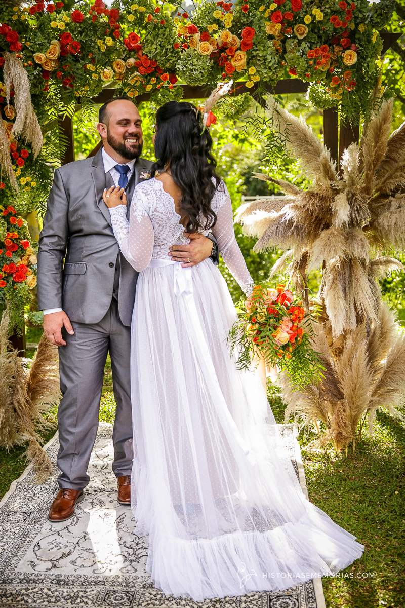 Eles são de longe , lá da cidade de Caçador e vieram casar aqui em rancho Queimado no Jardim dos Plátanos . Uma cerimônia ao ar livre, cheia de Amor, cercados apenas pelos mais íntimos mas grandiosa na vibração de energia positiva.