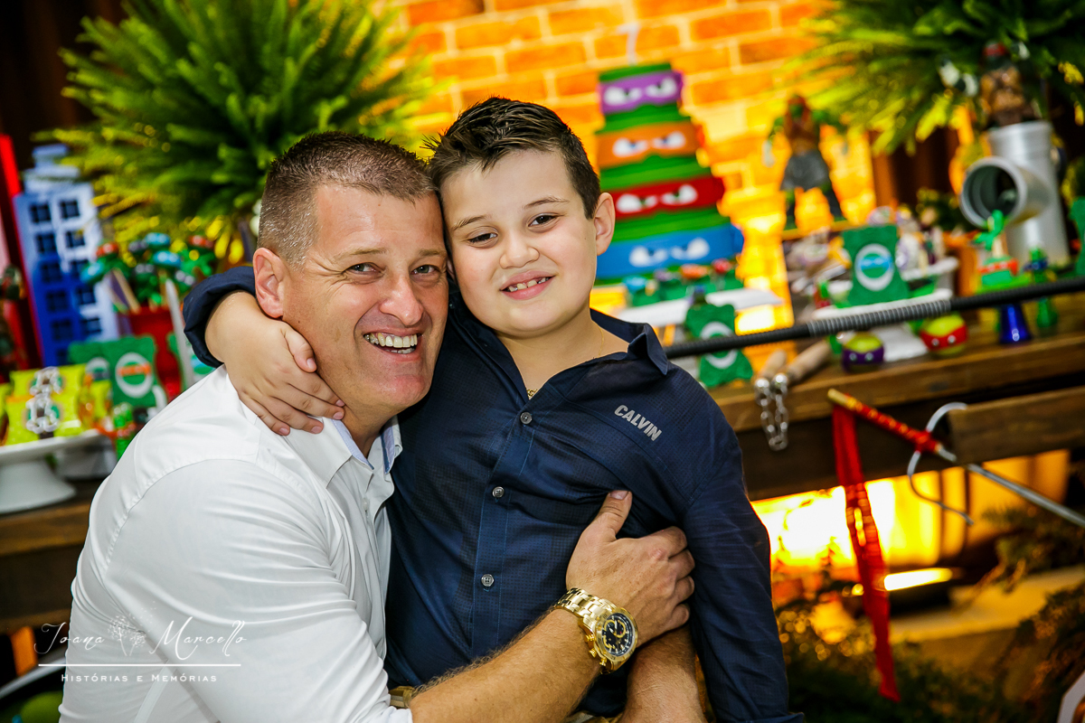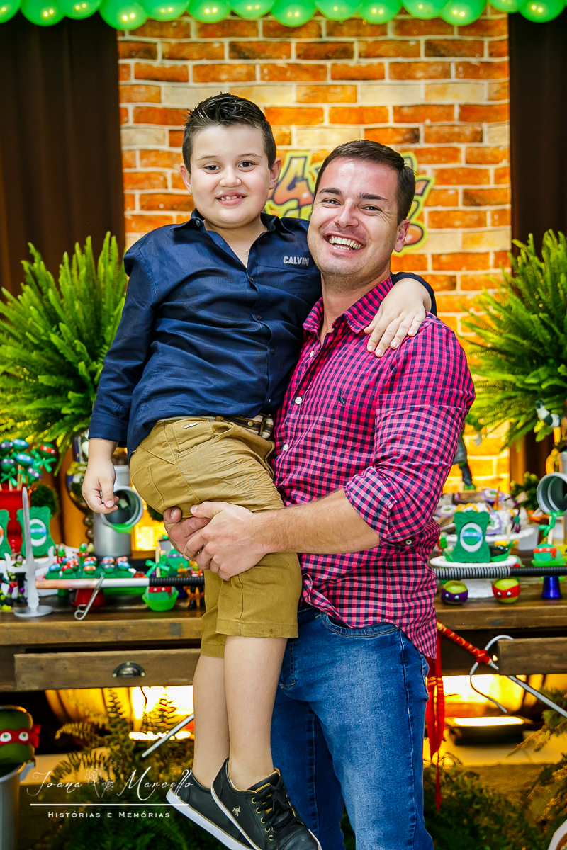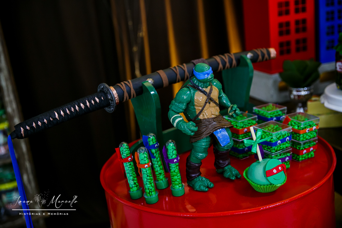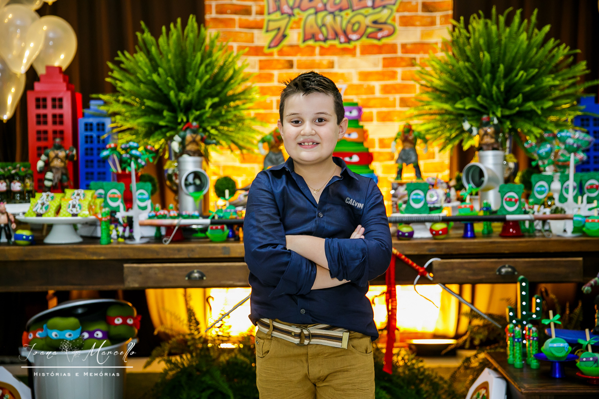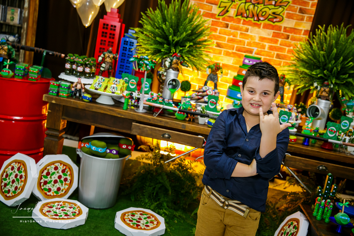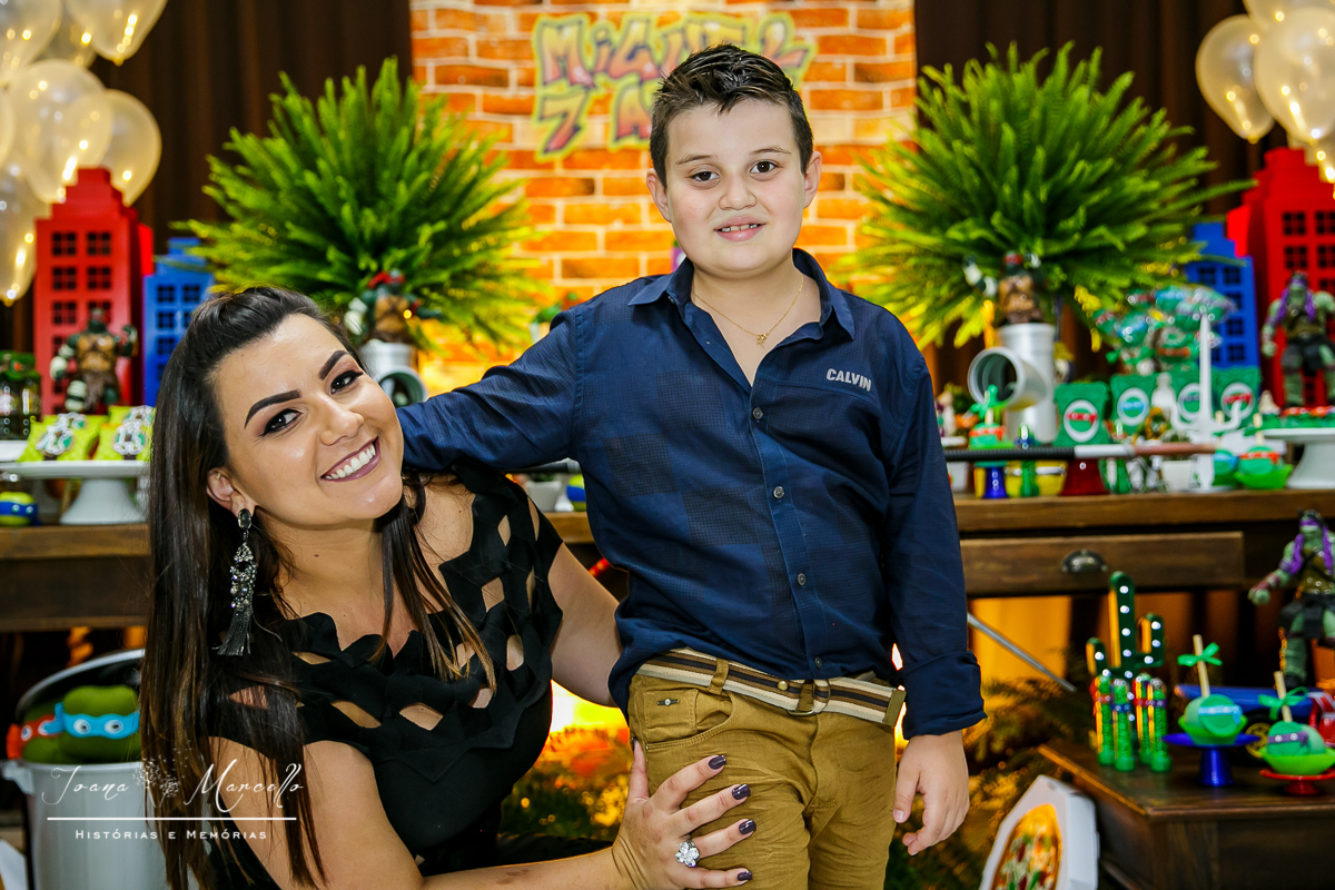 Mas agora tudo é diferente, é o Miguel quem escolhe o tema e esse ano foram As Tartarugas Ninja quem ele quis em sua festa.
