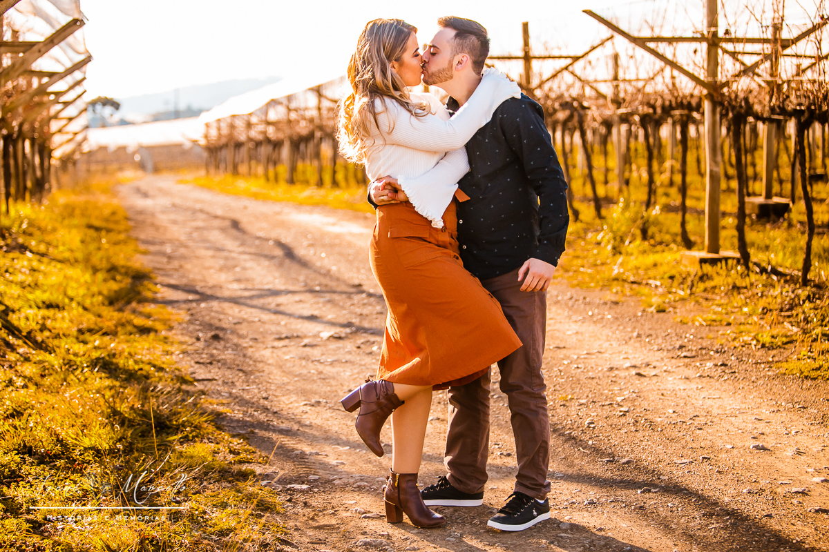 Ana e Mano simplesmente não tem como ficar indiferente ao ver essas fotos, esses sorrisos, olhares, essa luz e vocês. Primeiro fomos à São Joaquim que era o sonho da Ana fazer fotos na Vinícula Villa Francioni . Acreditando que pegaríamos o pôr do sol na volta, pensa na frustração de não dar tempo, pois o sol se pôs bem cedo nesse dia, mas a ideia do por do sol na Boa Vista não saía da cabeça dos fotógrafos e da noiva , então esperamos por um tempo bem bom, sol maravilhoso e partimos e olha...